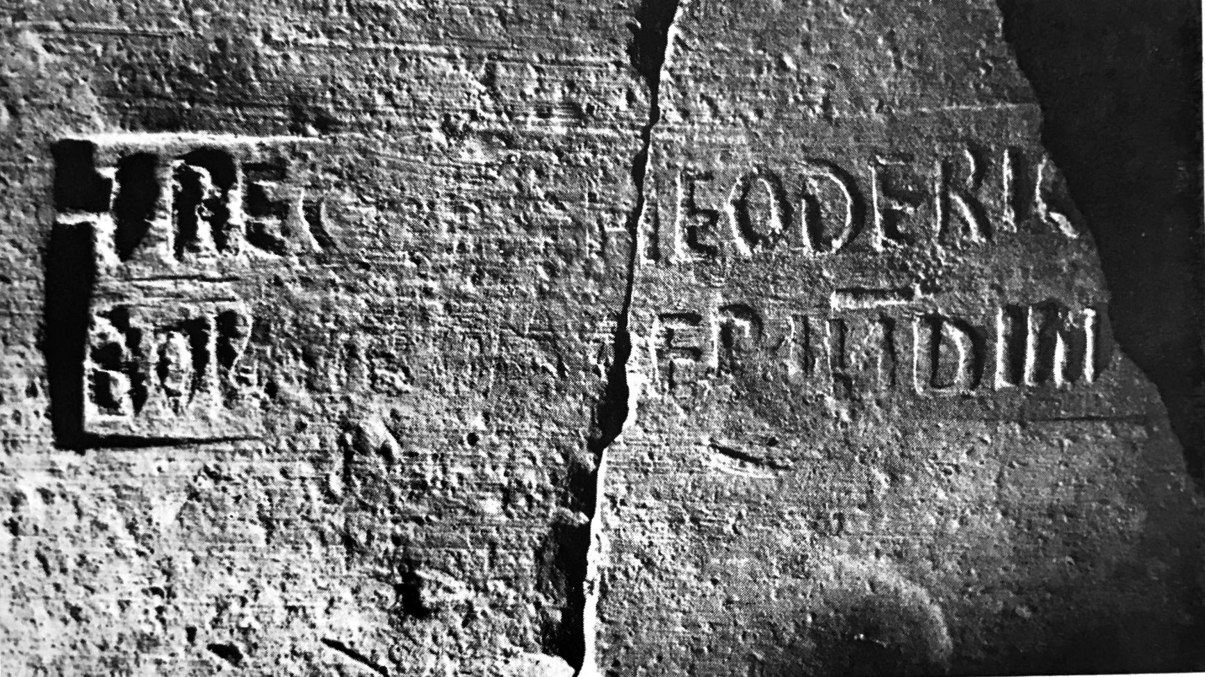 Commenti. Fr. di tegola (cm 17x14, sp. 2.5-2.9) rinvenuto in scavi del monastero di Farfa. L'impasto è simile alle tegole di Theoderico.
