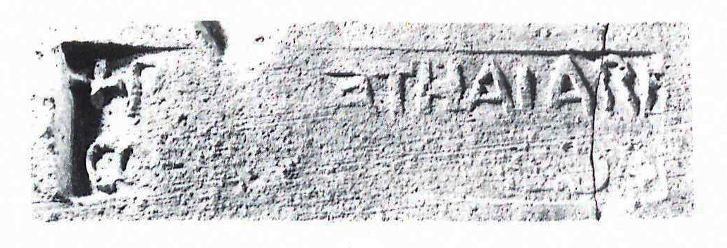 Paleografia. Testo retrogrado. A senza asta trasversale, R retrograda e priva dell'asta verticale.
