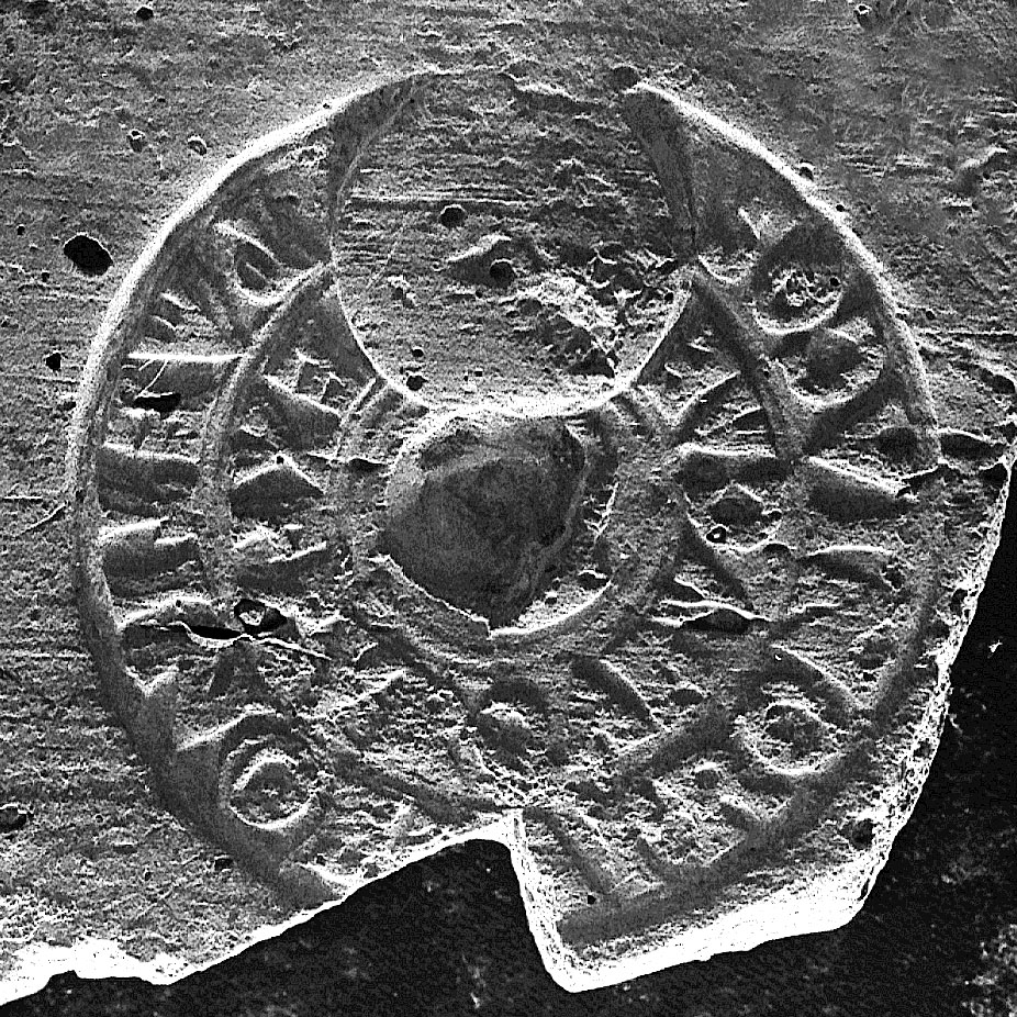 Edizioni. Cozzo 1936, fig. 85 (fr.). Righini 1975, 55s. N. 27 tav. V.2 (= CIL XV 205.12). LSO 225. Anderson 1991, 34 N. 25 (lett. 0.8-0.9, 0.7-0.9) fot. AAR nvb_brickstamps_005353, 119 N. 308 fot. AAR nvb_brickstamps_008968 (diam. bollo 7.4). Cooley 2019, 95 N. AshLI 263. Felle 2021, 372 N. 48. Gatta 2024 II, 555s. N. 561, fot. MNR inv. 32765; calco di Dressel.
