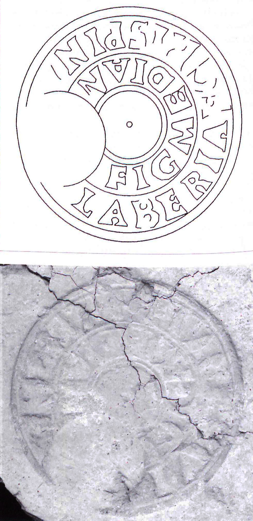 Commenti. Cfr. il simile signum in CIL XV 744, dove né l'officinatore, né le figlinae sono nominati. L'officinatrix compare con il nome completo, Sabinia Ingenua, nel bollo CIL XV 203.
