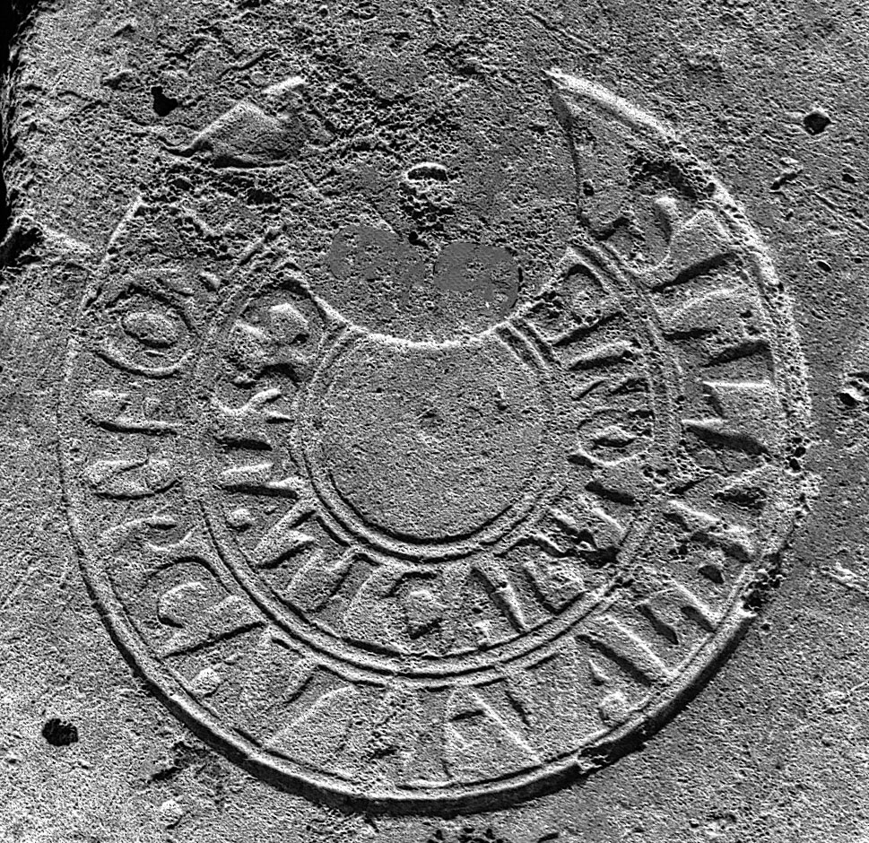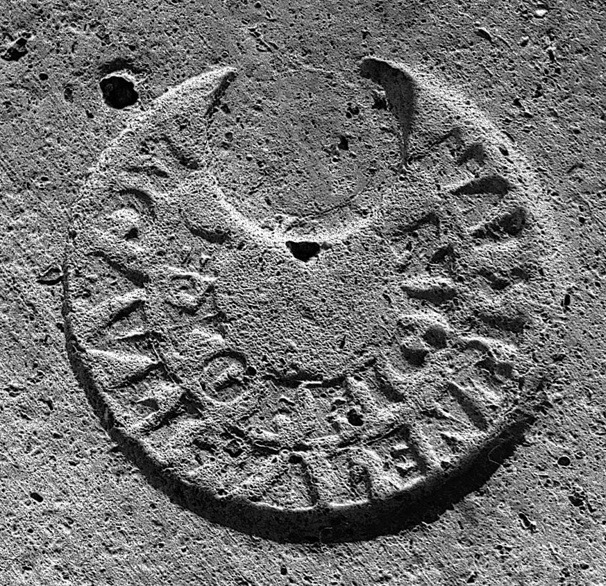 Commenti. Il testo è accompagnato da un secondo timbro circolare, anepigrafe (diam. 7.0); la figura al centro, che Dressel interpreta come una piccola luna crescente, potrebbe invece essere la solita impronta di un chiodo.