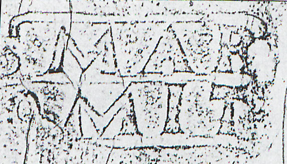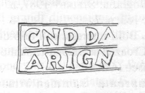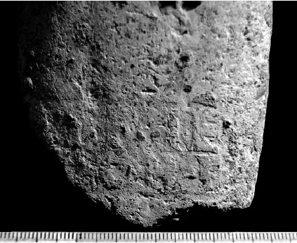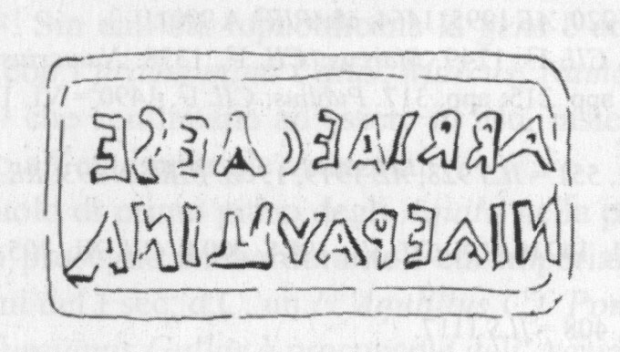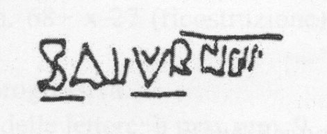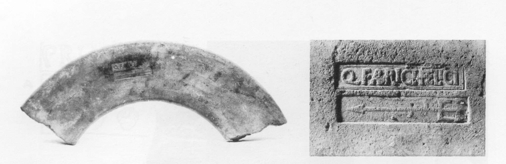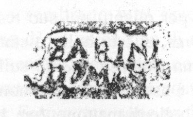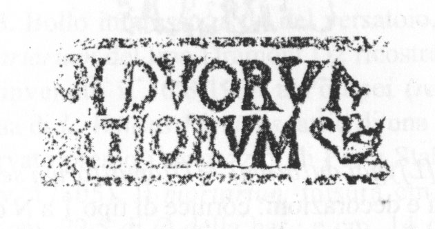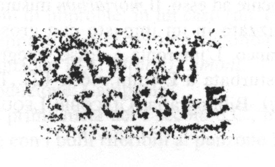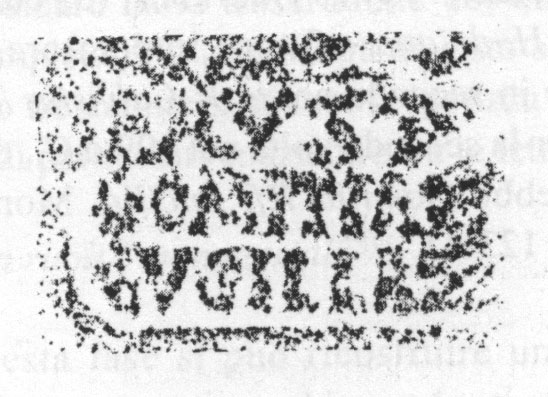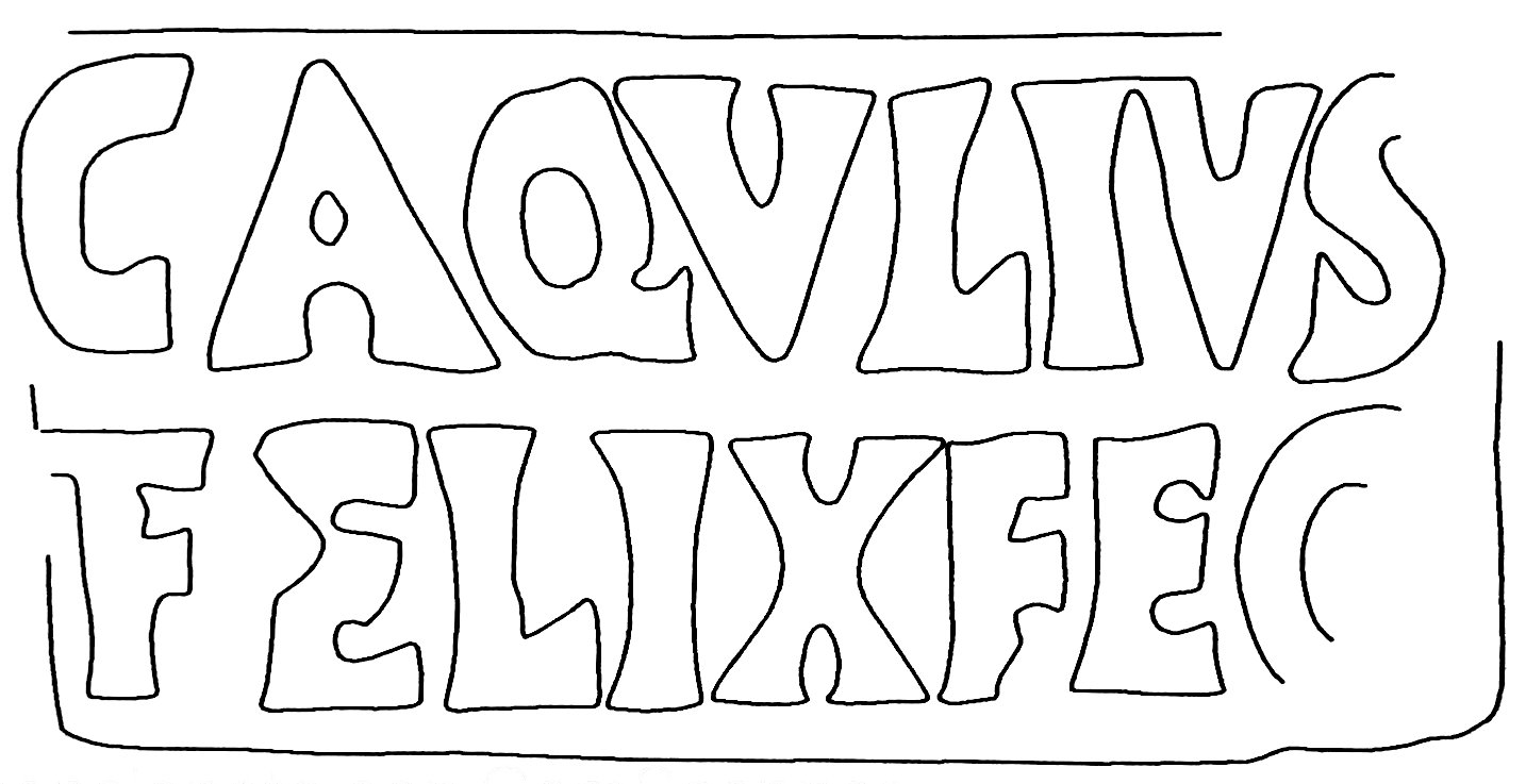 Paleografia. Il bollo ha solo il lato destro arrotondato, forse a causa della rotondità della parete sulla quale è impresso.