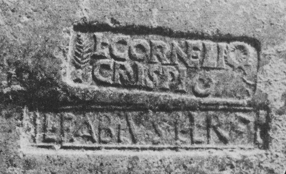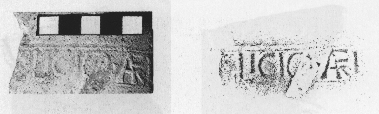 Commenti. Nella fotografia sembra conservato l'occhiello della P; Riley, infatti, legge Pudent[is]; nella seconda riga [---]VAC TO[---], mentre Pallecchi legge ]'Q 'A 'C TE[. La r. 2 è troppo male impressa e conservata per una lettura sicura, ma è preferibile l'attribuzione alle figlinae Tempesinae (Pallecchi) piuttosto che alle Tonneianae (Riley, che presenta anche l'ipotesi che in r. 1 si possa leggere il nome Prudens).