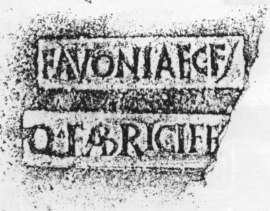 Commenti. La lettura segue Pallecchi, che comunque alla fine della r. 2 segue Riley leggendo S invece della T che si vede bene nella fotografia. C'è forse anche una terza riga, che in fotografia sarebbe tagliata. L'interpretazione di Pallecchi prende spunto dal bollo CIL XV 626 degli anni 212-217, dove gli officinatori sono due LL. Aelii, dei quali uno è Aprilis. Fidelis ha iniziato l'attività sotto C. Fulvius Plautianus (S. 190), continuato negli anni 205-211 (628) e sotto Caracalla (625).