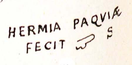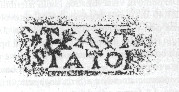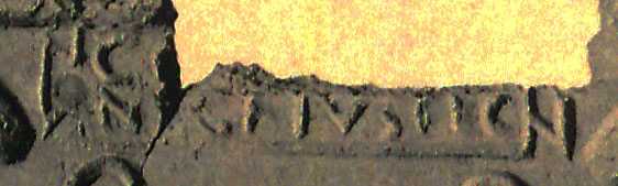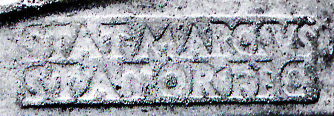Commenti. Associato a un bollo con ramo di edera, Pallecchi 2002, 184 punzone 22.6 N. 236b, sig. 8.8+, 2.4. Sembra uguale al punzone 22.7 (sig. 6.1+, 2.4), che compare due volte sul mortaio Pallecchi N. 238a/b, che non presenta un bollo con testo.