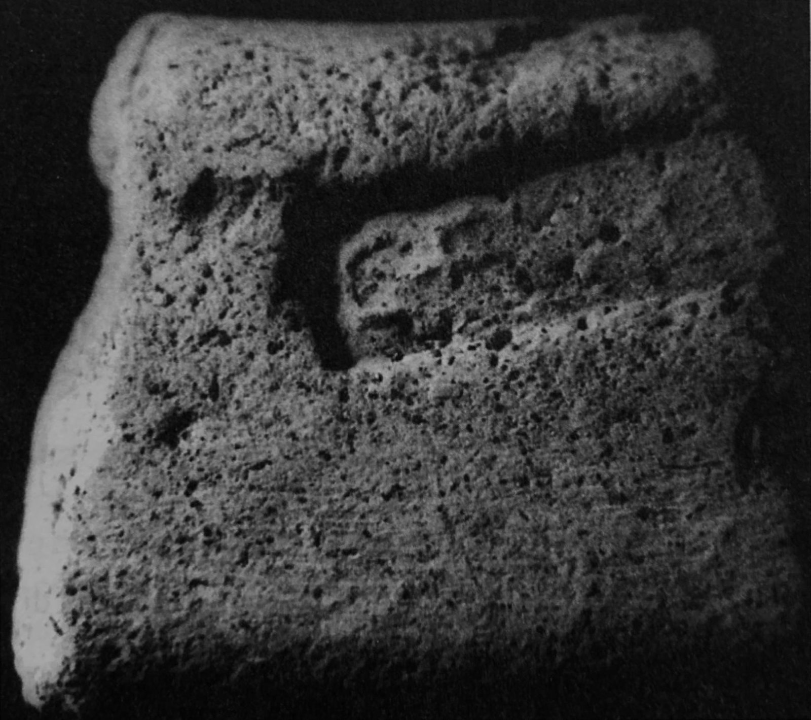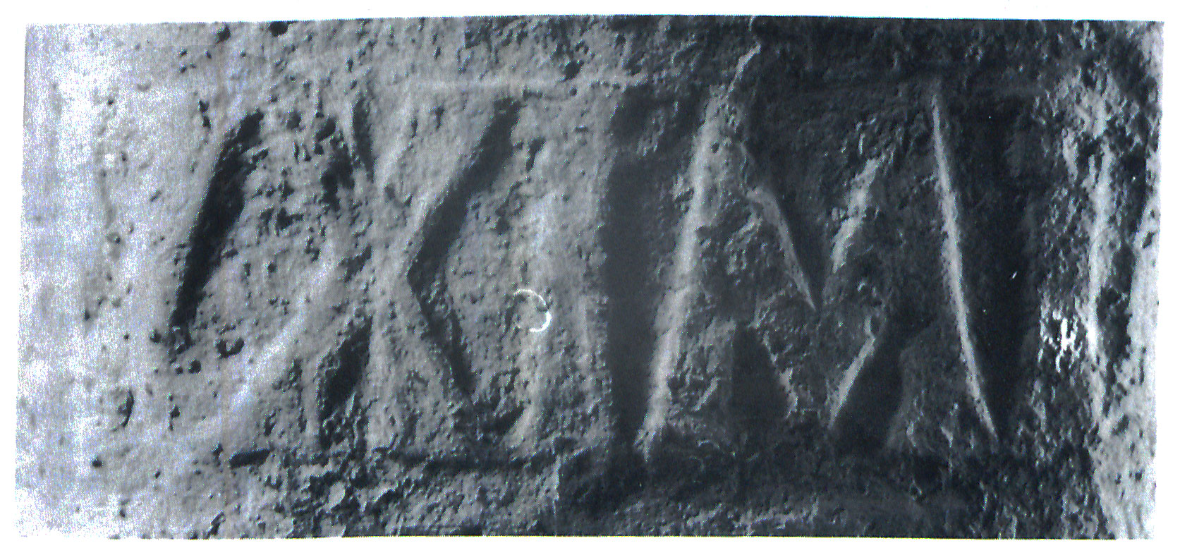 Paleografia. Grandi lettere rilevate e distanziate nella parte superiore della lastra.