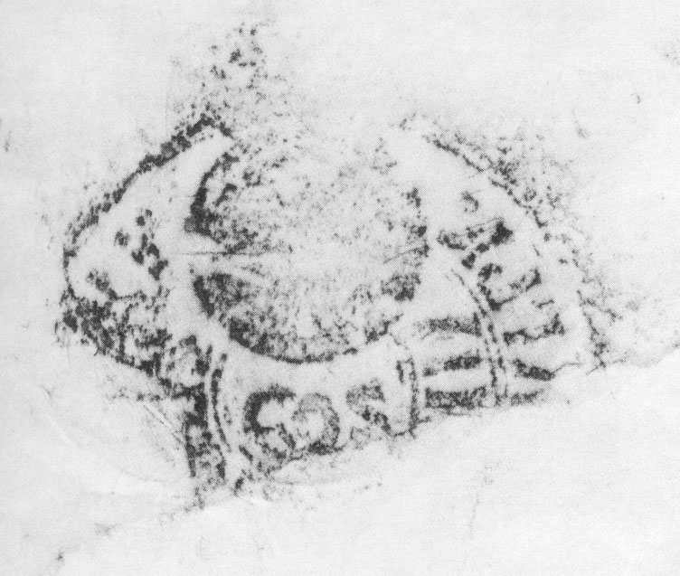 Sig. 9.2 ca., orb. ?. Lett. 0.8, 0.8, 0.8. Lin. 1, 2, 2, 1.