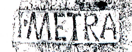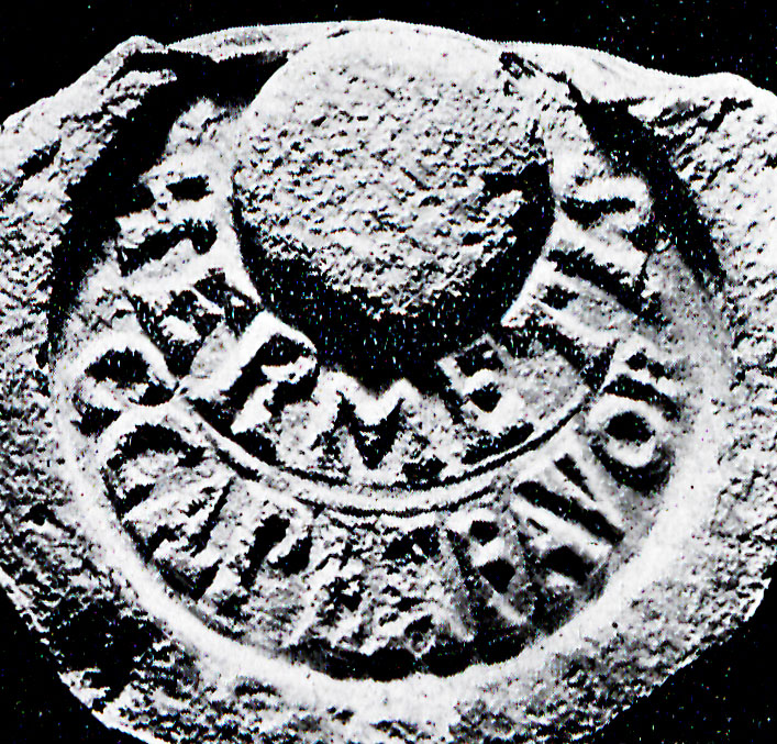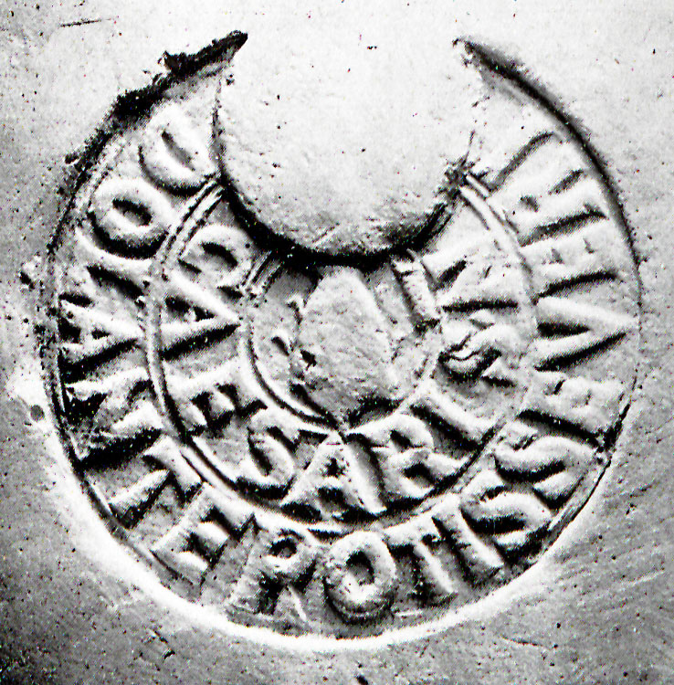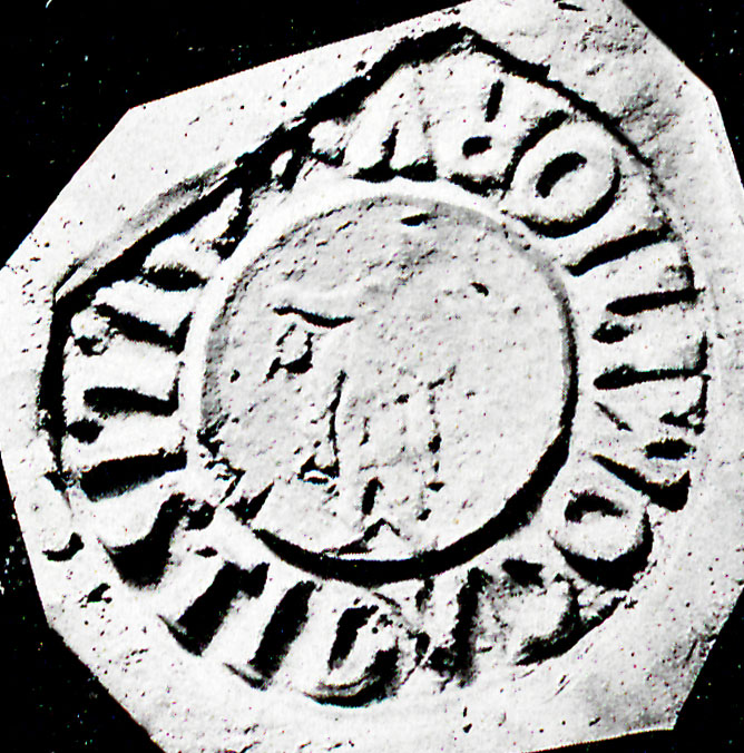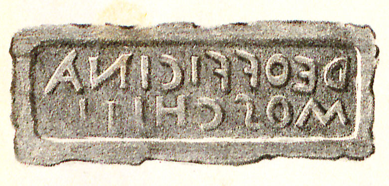 Paleografia. Litteris solito maioribus Dressel. Nell'immagine di Dressel il lato sinistro del bollo è tagliato a dentelli, quello destro è arrotondato.