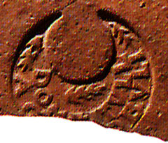 Paleografia. R. 2, punto non notato da Dressel. - Signum protome viri ss. secondo Dressel; secondo Beraud Mercurio con borsa e caduceo, che non sono visibili in fotografia.