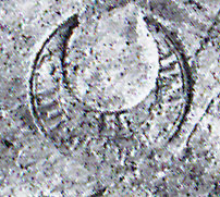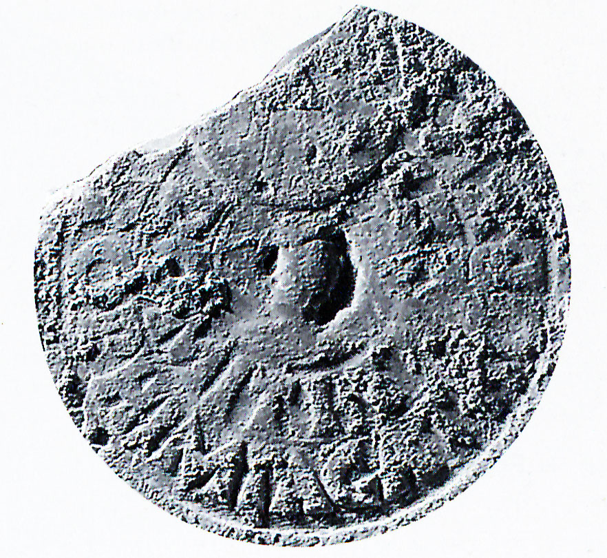 Paleografia. Orbicolo forato. Le palmette non sono visibili nei due esemplari illustrati. Il punto GADIA· non notato in LSO.