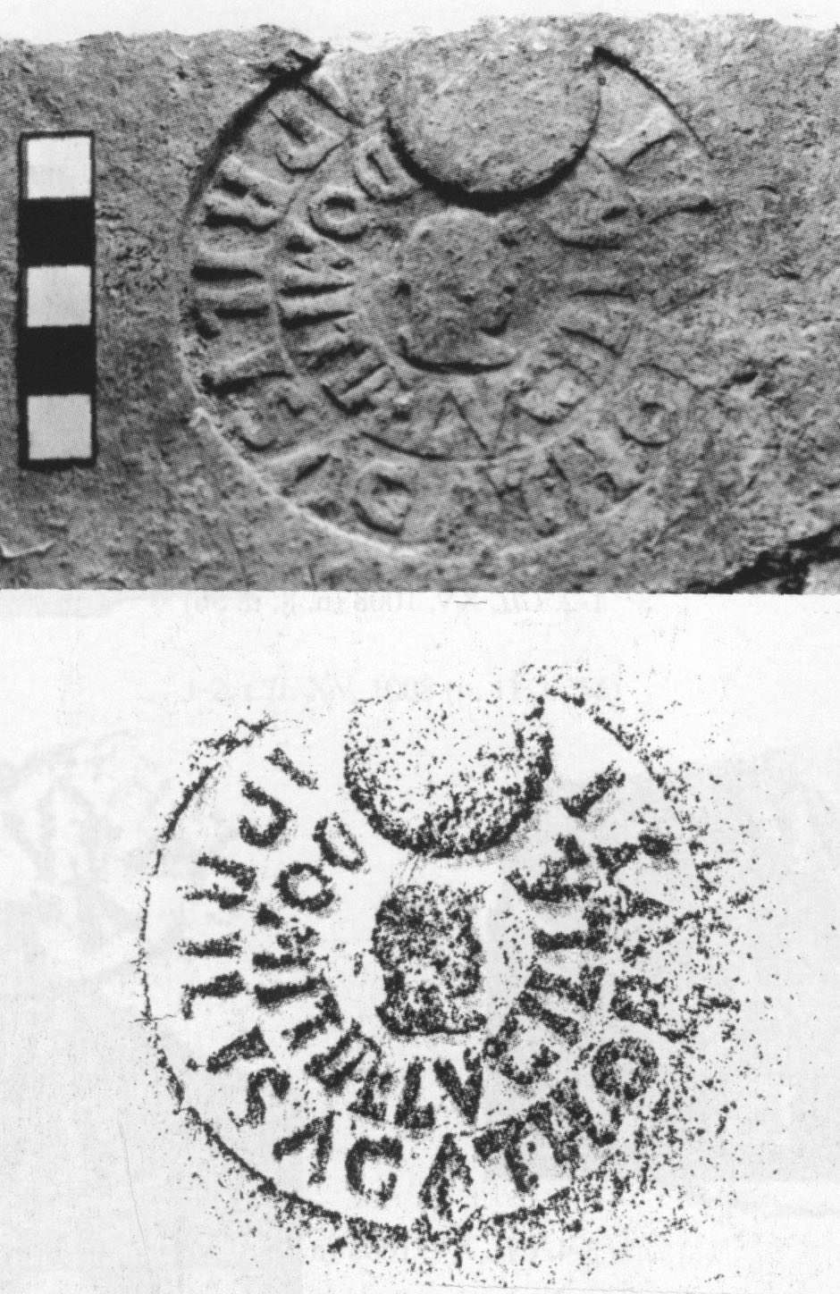 Paleografia. Bollo rettangolare "senza cornicetta"; "della seconda riga erano rimaste solo tracce di lettere" (Tomassetti).