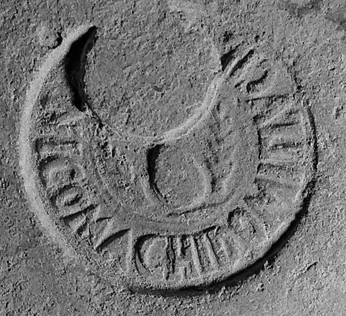 Paleografia. La pigna sembra posare su un rametto. In Gatta, alt. delle lettere 1.3-1.4.