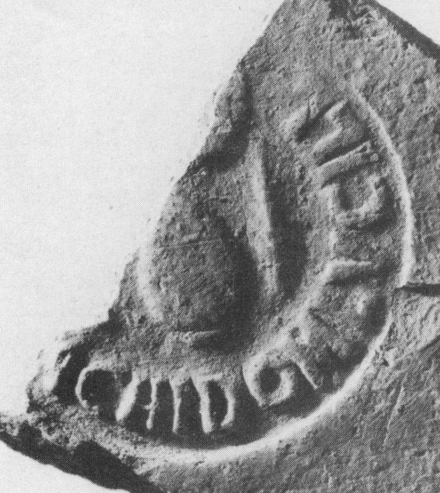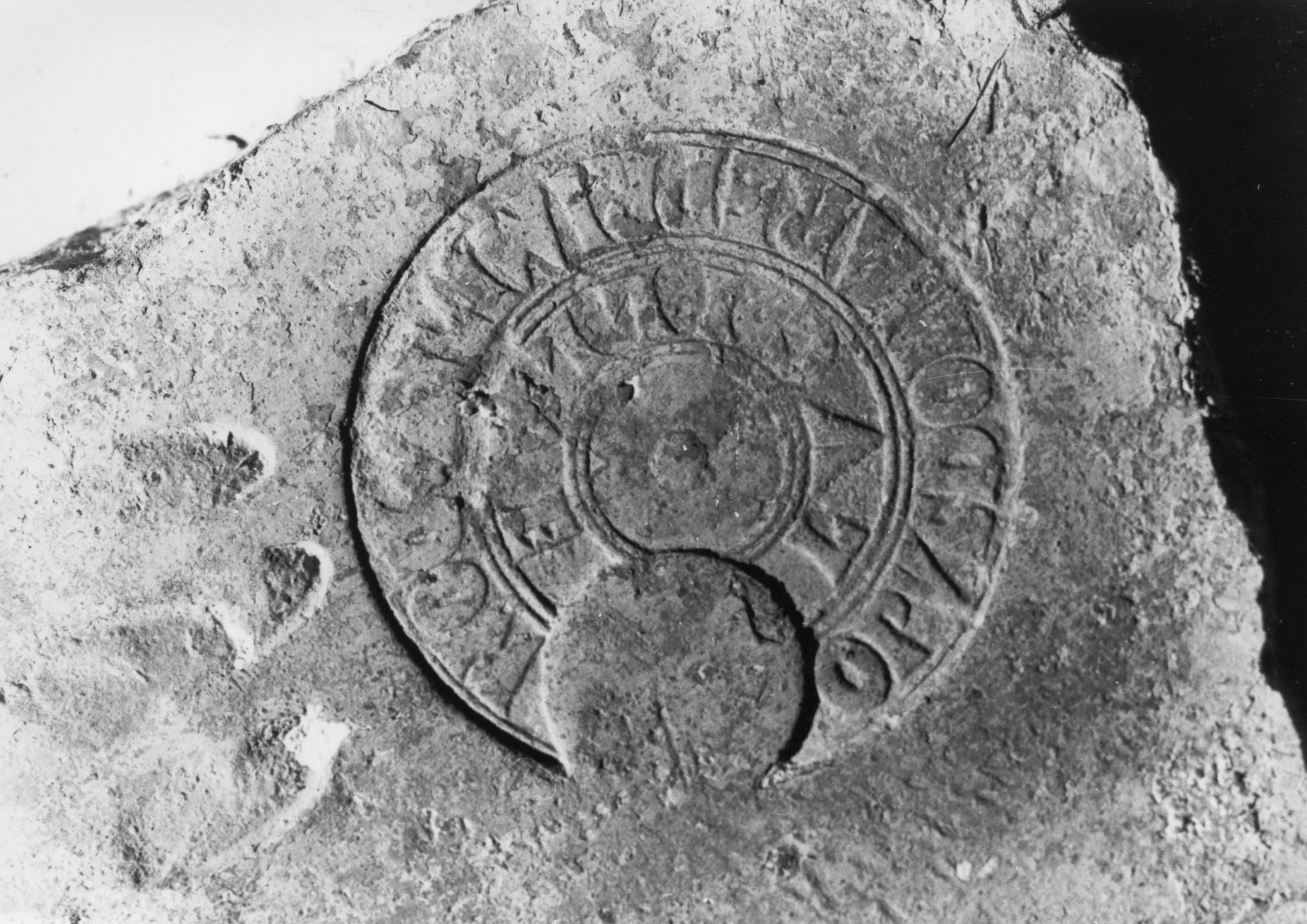 Commenti. Negli esemplari ostiensi la rottura del timbro ha causato lo sfondamento della parte centrale del bollo. Delle due palmette rimangono solo esili tracce, che permettono comunque una identificazione sicura con CIL XV 1018. Per ulteriori esemplari v. 1018 var. 1-3.