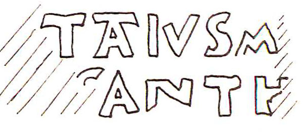 Commenti. La prima riga forse contiene le iniziali del dominus T. P( ) P( ), la riga dritta darebbe le iniziali di un servo H( ) e del suo patronus-officinator E( ) I( ).