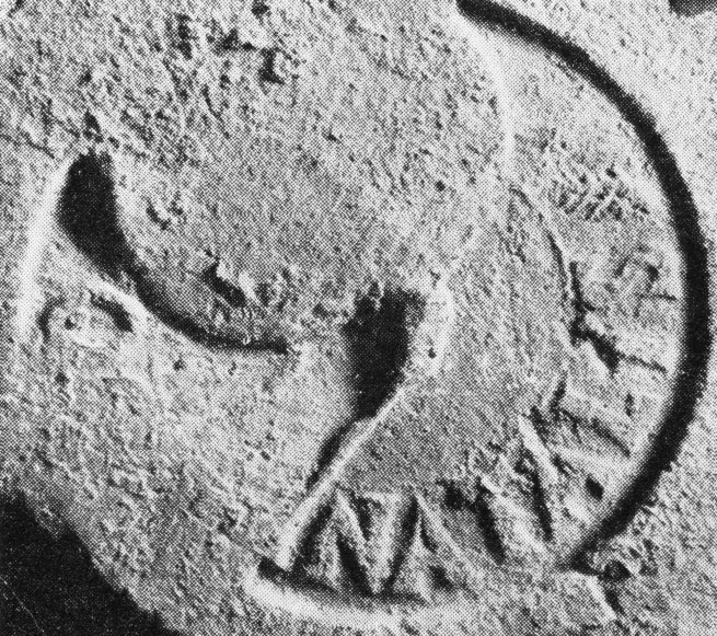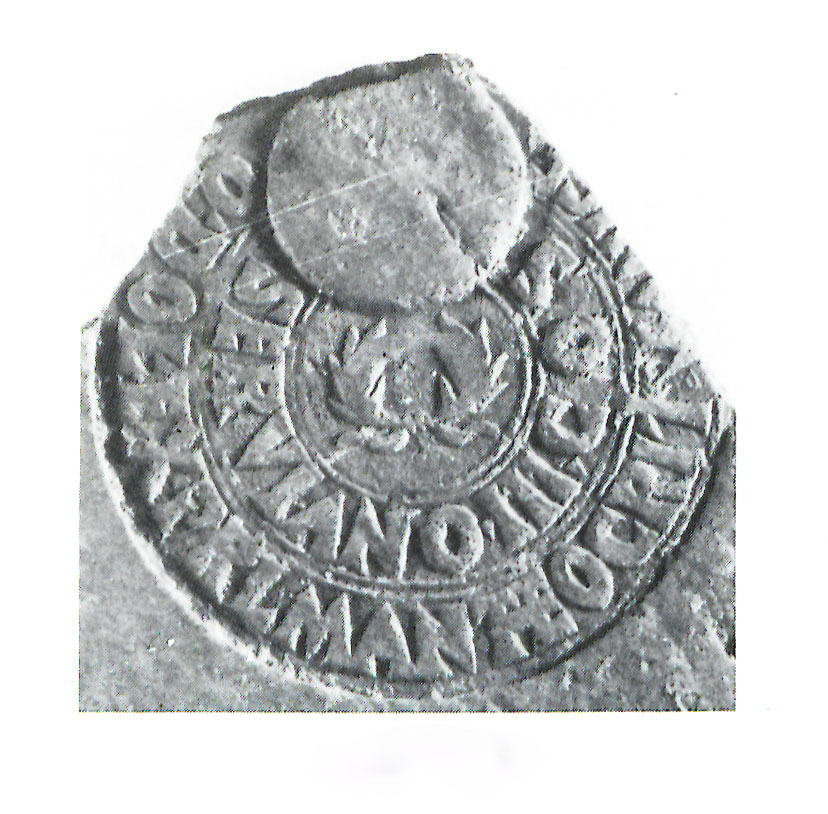 Paleografia. "Mi sembrerebbe però possibile integrare la traccia, restata sul lato sinistro del bollo, con un serto, analogo a quello visibile a destra, o una stelletta" (Camilli).