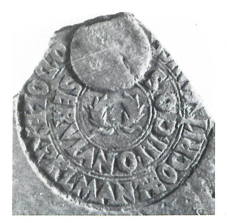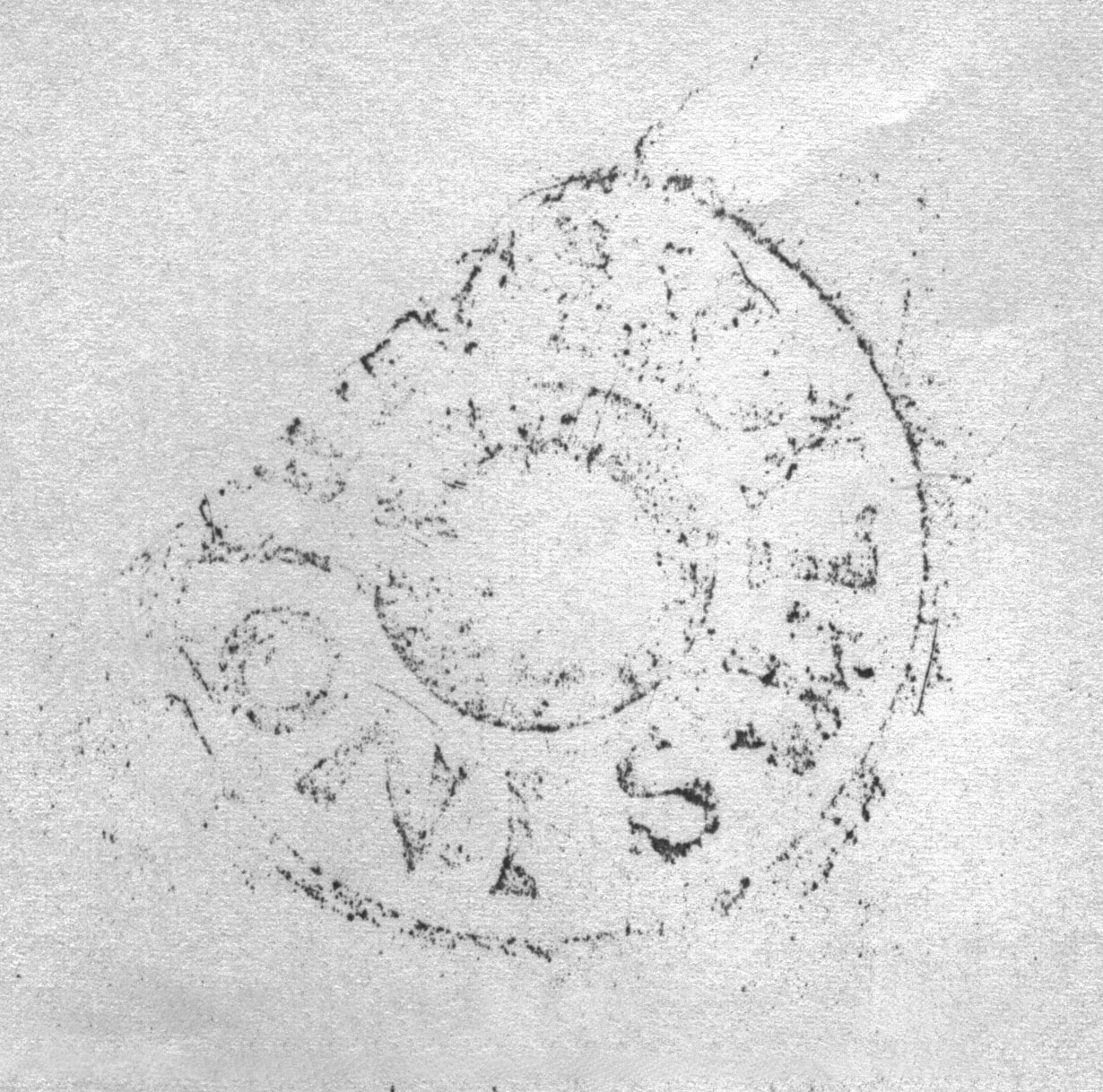 Paleografia. Sembra che le misure date da Gatta si riferiscano a un bollo diverso, con due righe di testo.