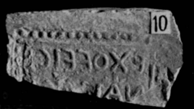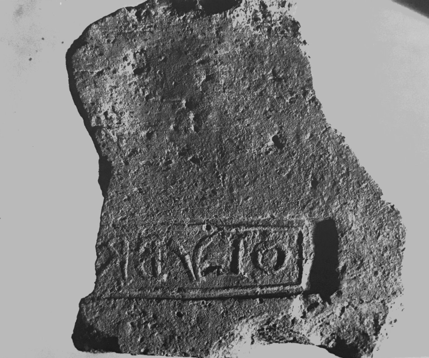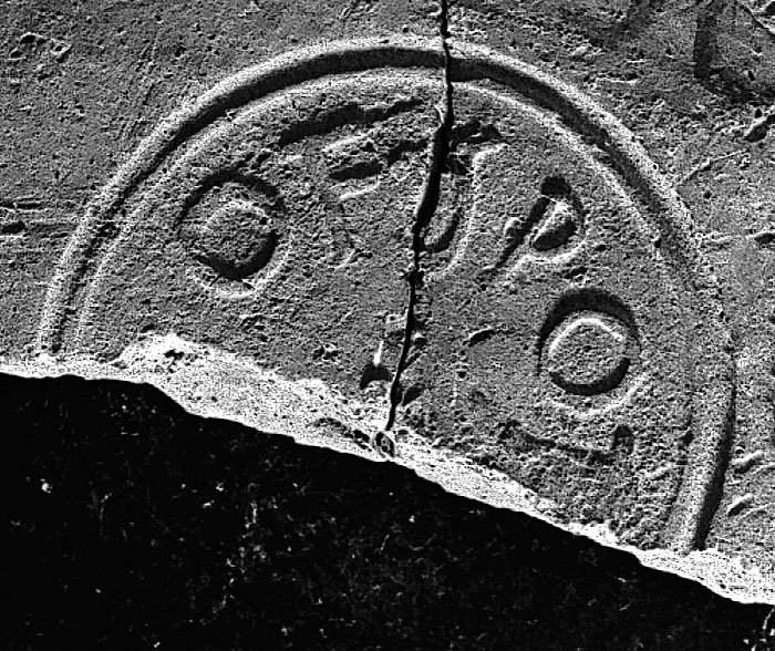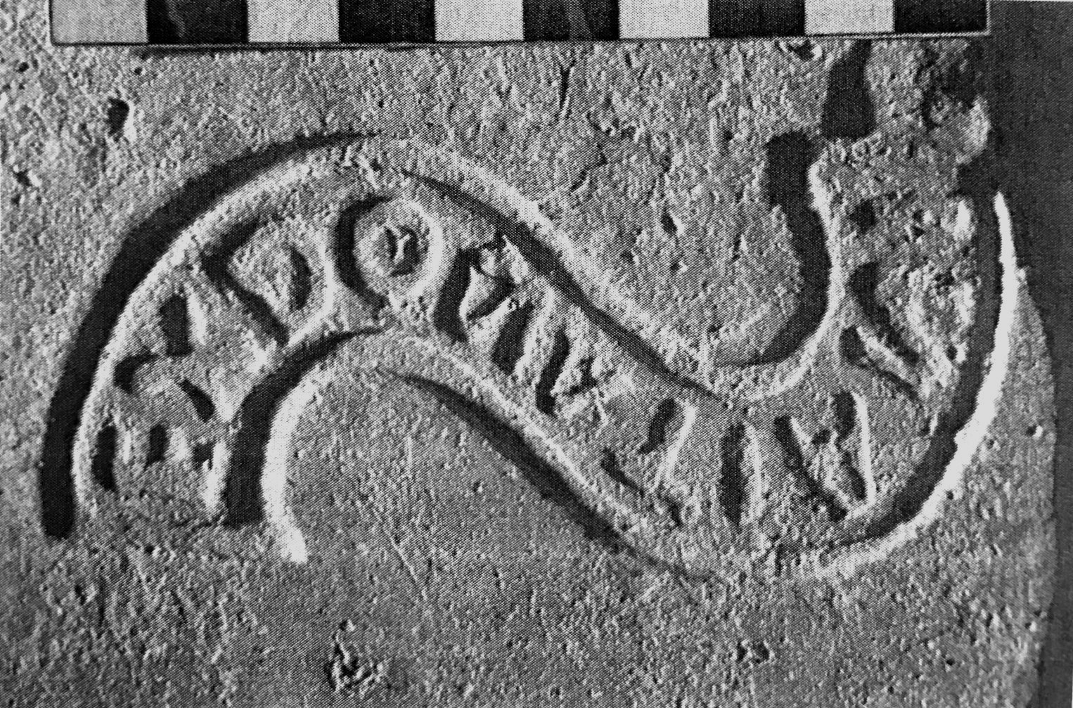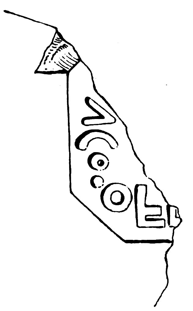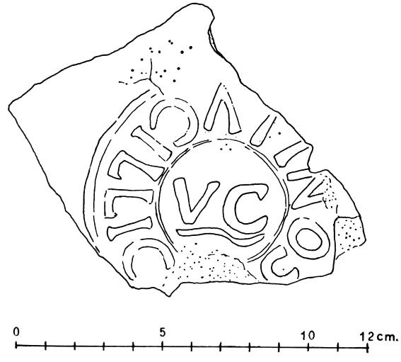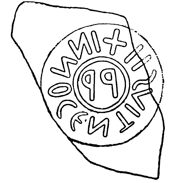 Commenti. Felle identifica il bollo con punto interrogativo; in effetti esso non corrisponde all'unico es. attualmente noto di CIL XV 1547. La grafia indirizza la ricerca nell'ambito tardo-antico. La trascrizione basata sulla piccola fotografia è incerta – potrebbe trattarsi di numerali, in r. 1 retrogrado.