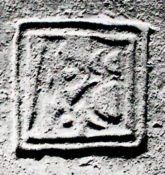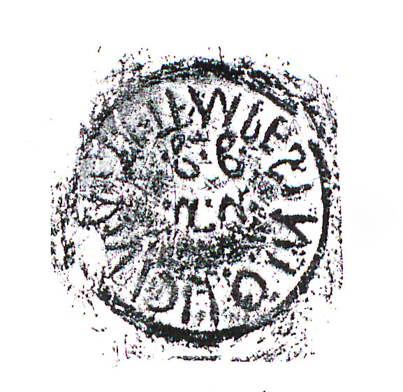 Paleografia. La forma del bollo è un quadrato con gli angoli smussati. R. 2, la A è piccola. R. 3 lettere capovolte.