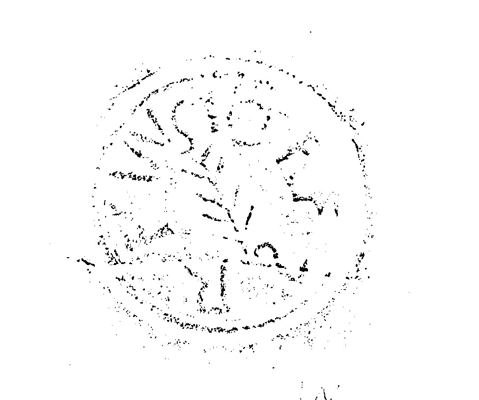 Paleografia. Testo retrogrado. Bollo bene impresso con lettere chiare, salvo l'ultima che potrebbe essere una O quadrata (nel calco si vede parte del tratto verticale vicino al margine del bollo); la prima lettera, frammentaria, sembra una A.