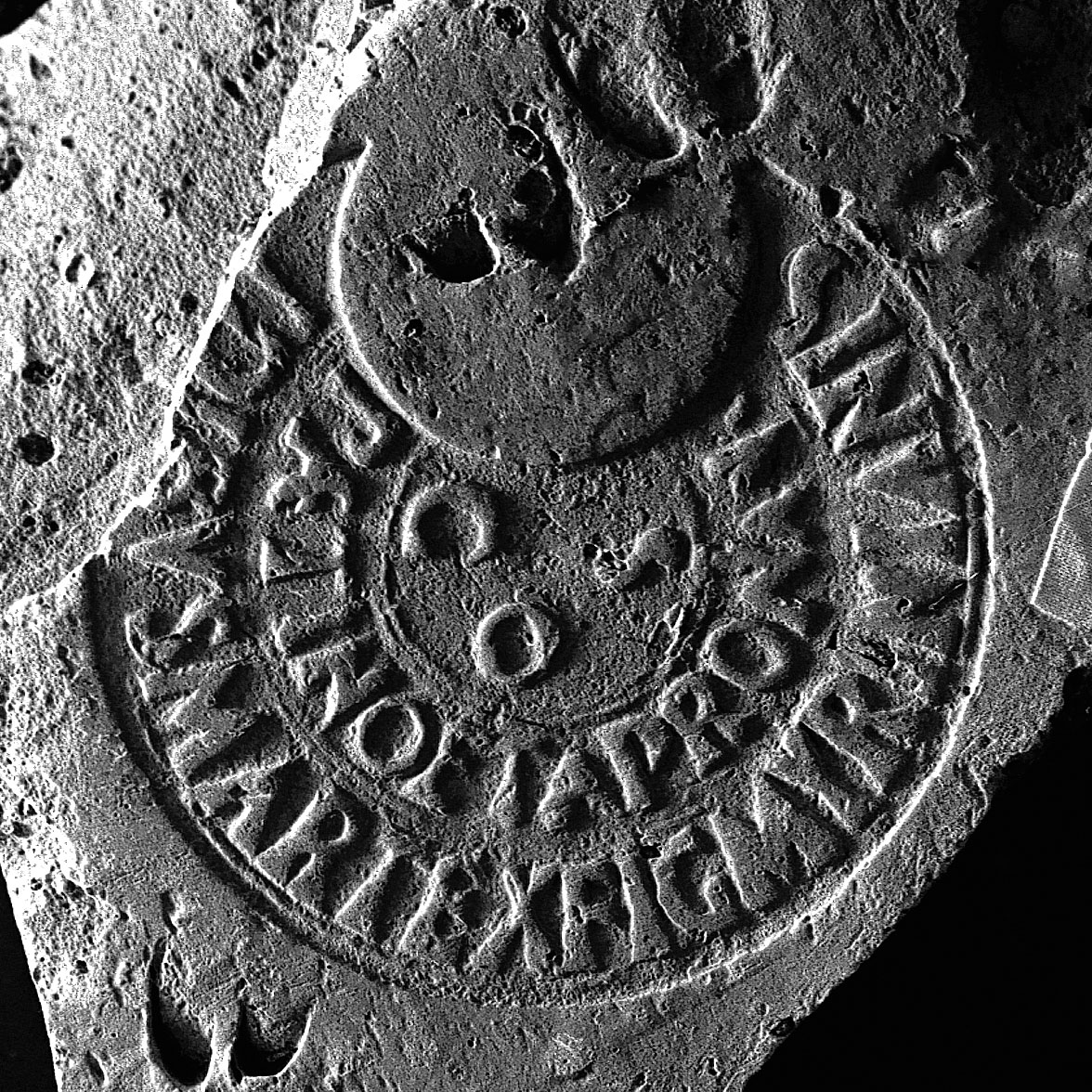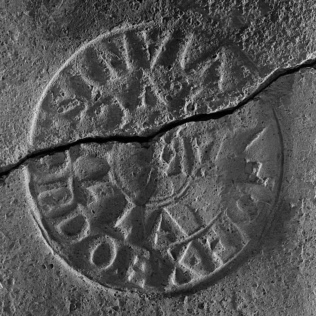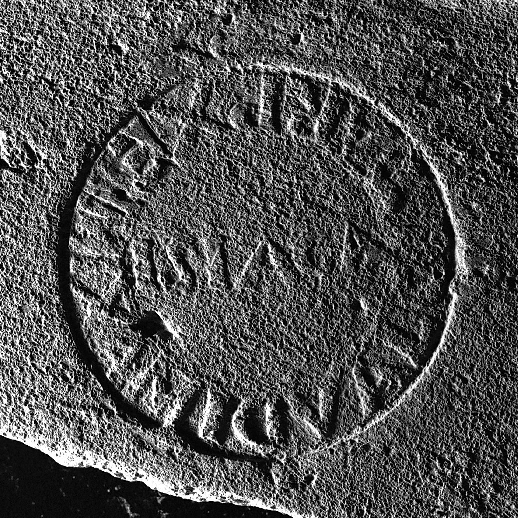 Edizioni. Cozzo 1936, fig. 85 (fr.). Righini 1975, 55s. N. 27 tav. V.2 (= CIL XV 205.12). LSO 225. Anderson 1991, 34 N. 25 (lett. 0.8-0.9, 0.7-0.9) fot. AAR nvb_brickstamps_005353, 119 N. 308 fot. AAR nvb_brickstamps_008968 (diam. bollo 7.4). Cooley 2019, 95 N. AshLI 263. Felle 2021, 372 N. 48. Gatta 2024 II, 555s. N. 561, fot. MNR inv. 32765; calco di Dressel.