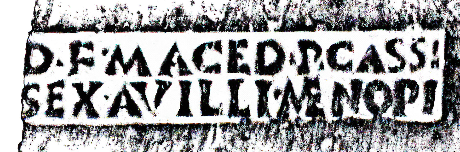 Paleografia. Punti non notati da Dressel; r. 1, _I_I Bloch con un tratto orizzontale sopra le lettere; i punti II· e AQVILI· non notati da Bloch; r. 2, [C]OS senza punto Bloch; r. 3, M·S· con punti Bloch.