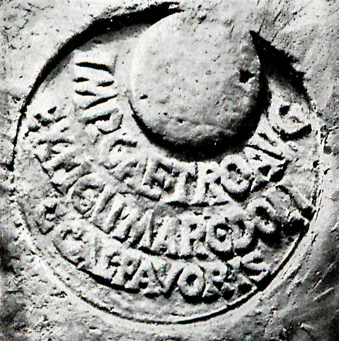 Commenti. Cfr. il simile signum in CIL XV 744, dove né l'officinatore, né le figlinae sono nominati. L'officinatrix compare con il nome completo, Sabinia Ingenua, nel bollo CIL XV 203.
