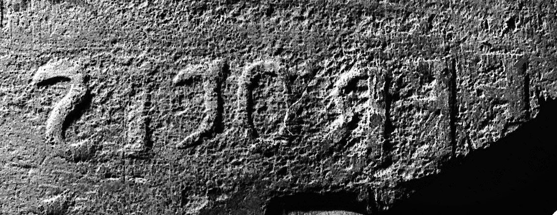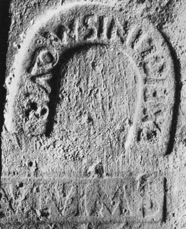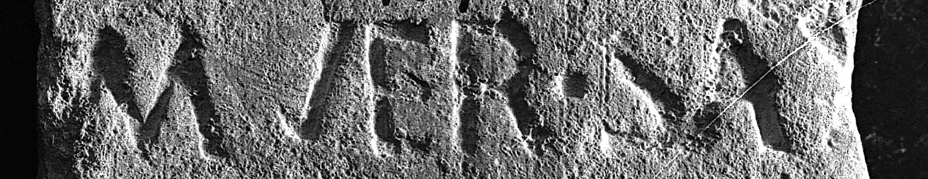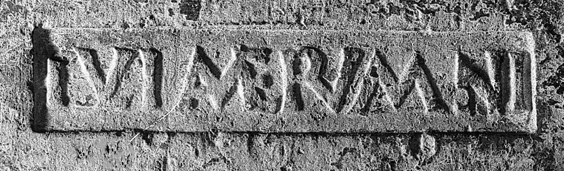 Paleografia. La lettera A presenta il tratto orizzontale spezzato a forma di V. Taglietti 2001, 776 aggiunge l'informazione che la lettera è incavata.