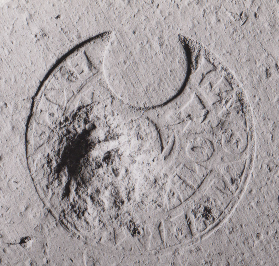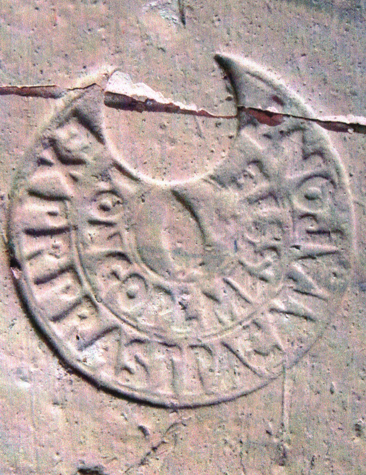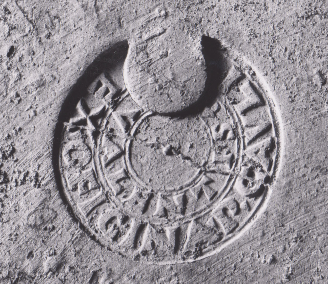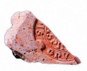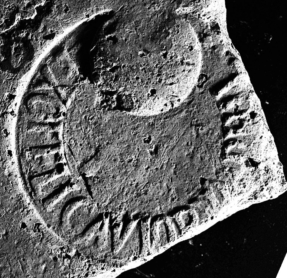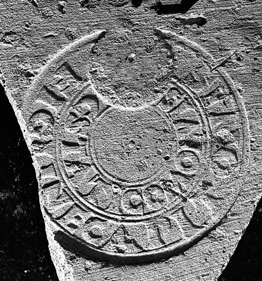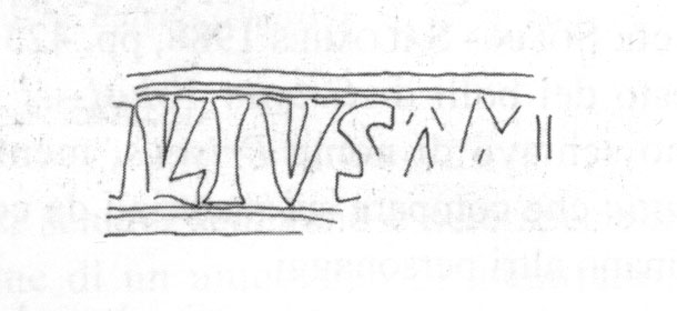 Commenti. Il testo è accompagnato da un secondo timbro circolare, anepigrafe (diam. 7.0); la figura al centro, che Dressel interpreta come una piccola luna crescente, potrebbe invece essere la solita impronta di un chiodo.