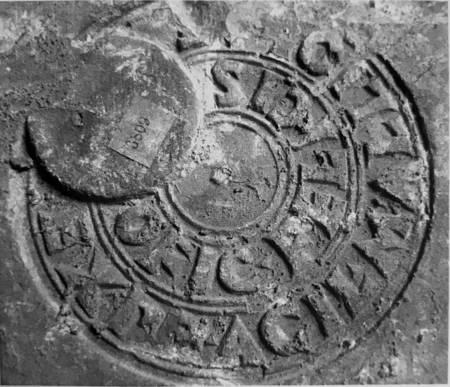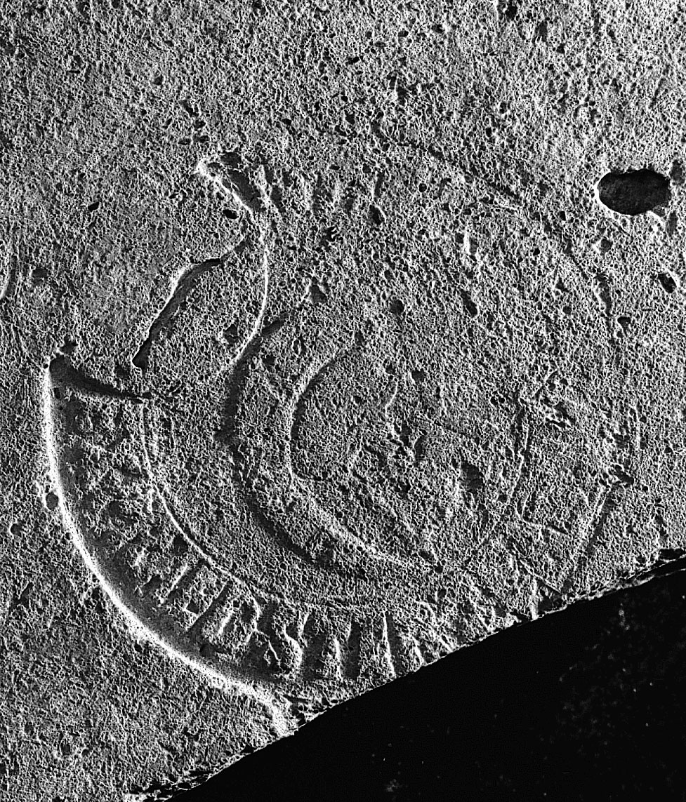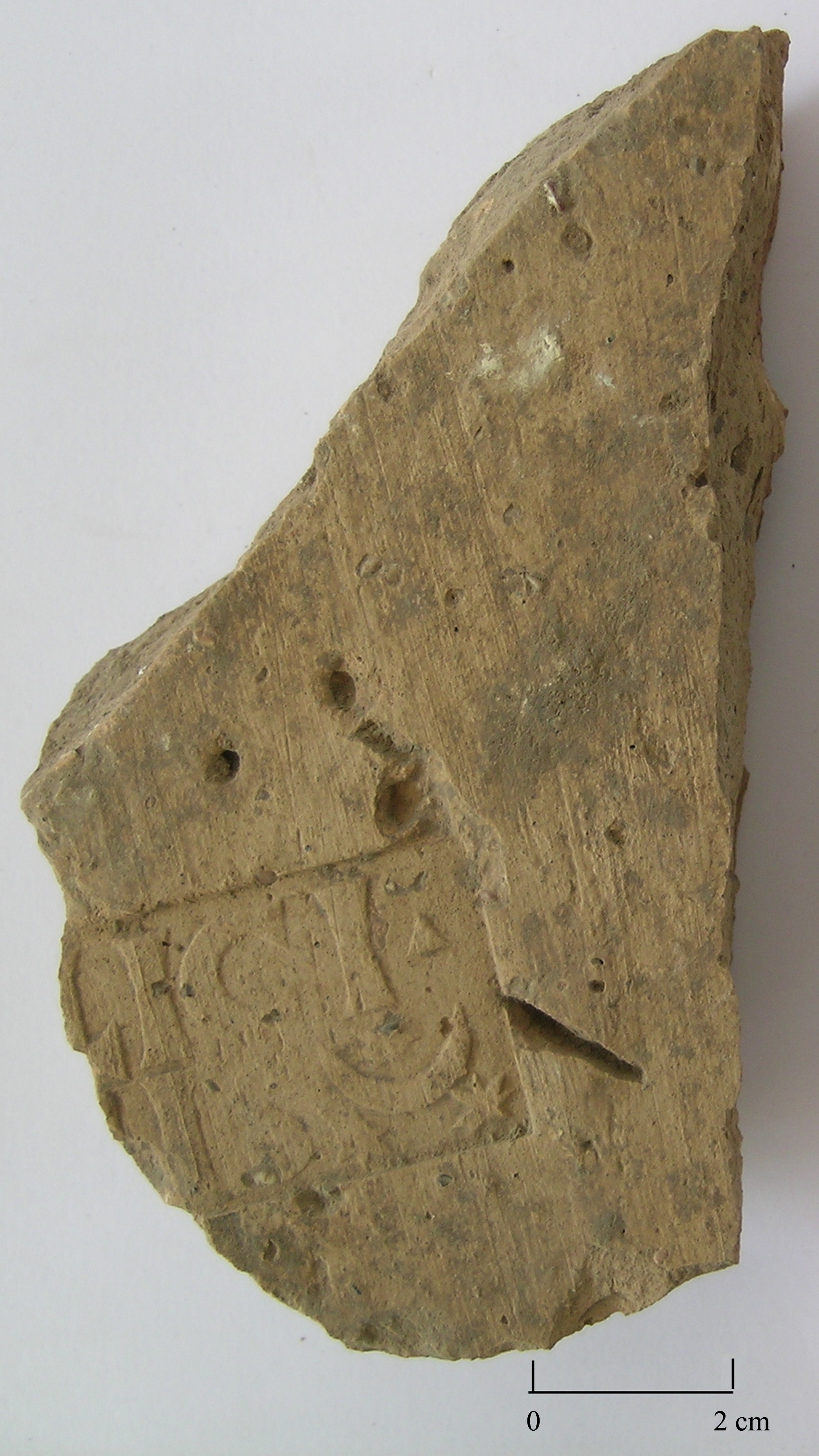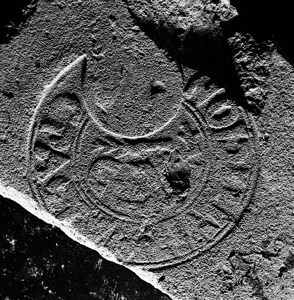 Commenti. Il testo è accompagnato da un secondo timbro circolare, anepigrafe (diam. 7.0); la figura al centro, che Dressel interpreta come una piccola luna crescente, potrebbe invece essere la solita impronta di un chiodo.