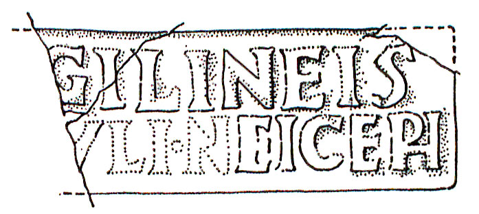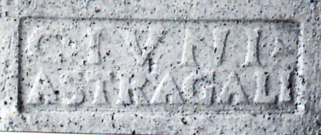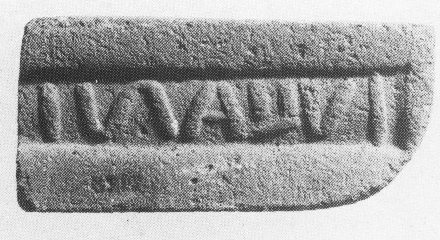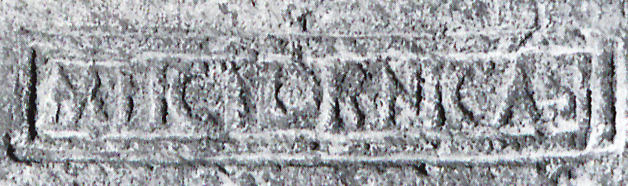 Commenti. "The elaborate form of the crossbar of the A, and the generally decorative appearance of the stamp, suggest a date after Diocletian", Anderson. Il bollo non è illustrato; il giudizio rimane sospeso.