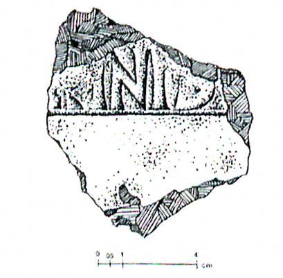Commenti. L'ipotesi che l'esemplare del MNR, dove mancano i punti, sia stato impresso con una matrice diversa (Taglietti 1973) va verificata confrontando la posizione delle lettere.