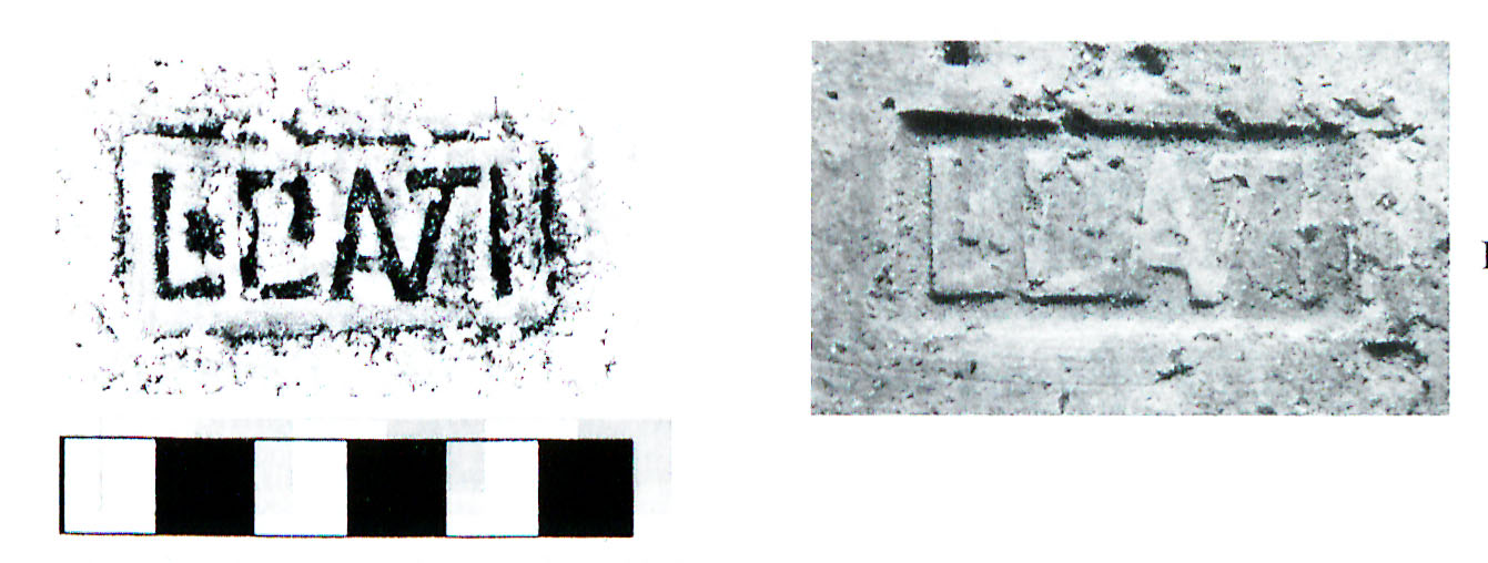 Commenti. Secondo Anderson uno scioglimento ragionevole sarebbe L. P(lauti), da confrontare con CIL XV 2261, mentre Biagini avvicina il bollo al contemporaneo Novum CIL XV 1387/8, L. Publ( ).