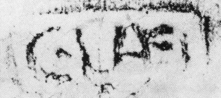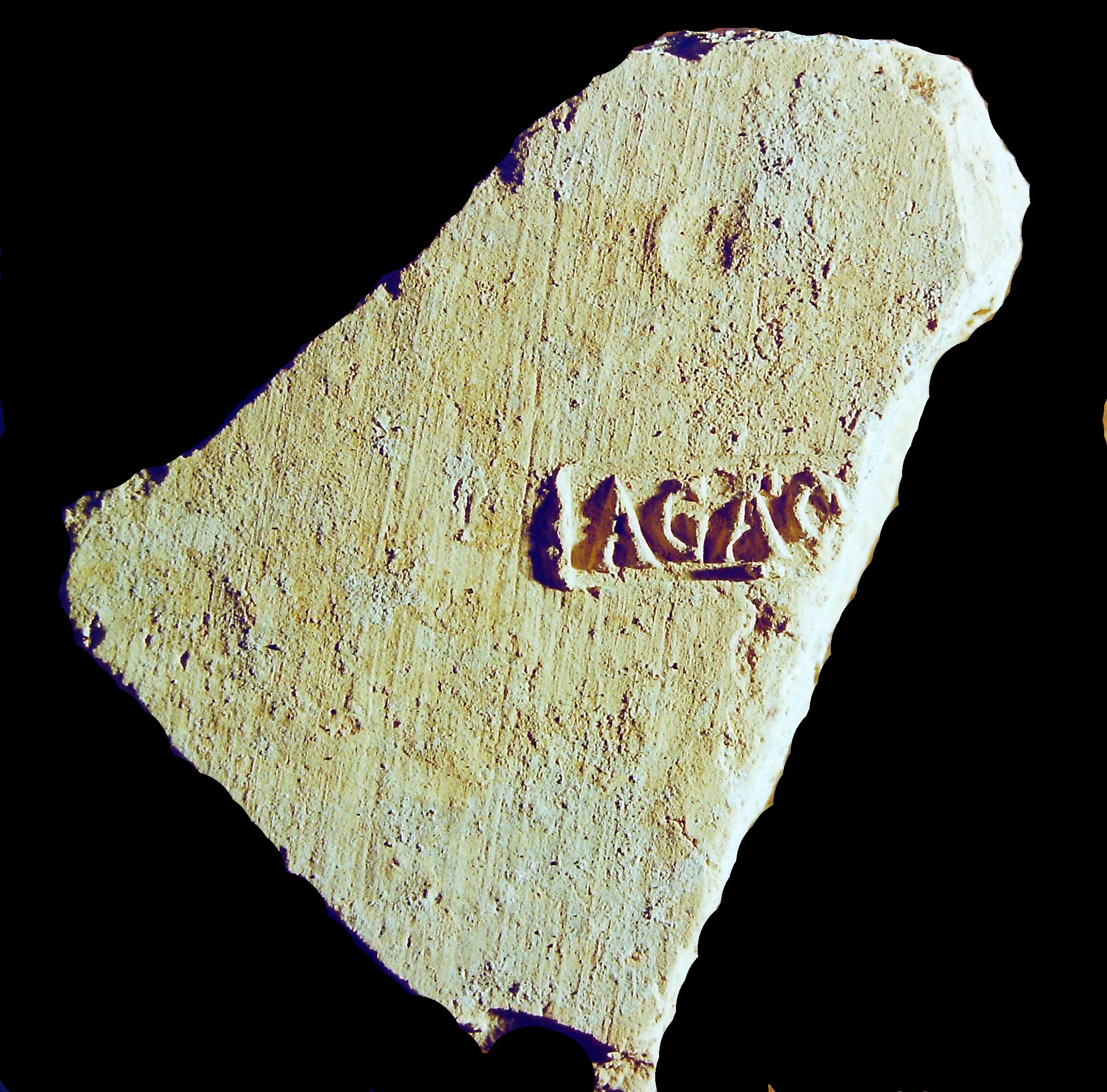 Commenti. La trascrizione di Moscetti - AGATH[OCLES] - viene smentita dalla fotografia. Forse un bollo del servo prima della manumissione, cfr. 2266.