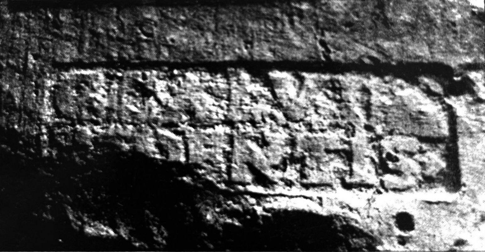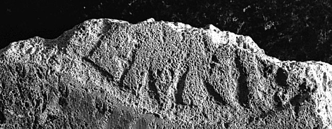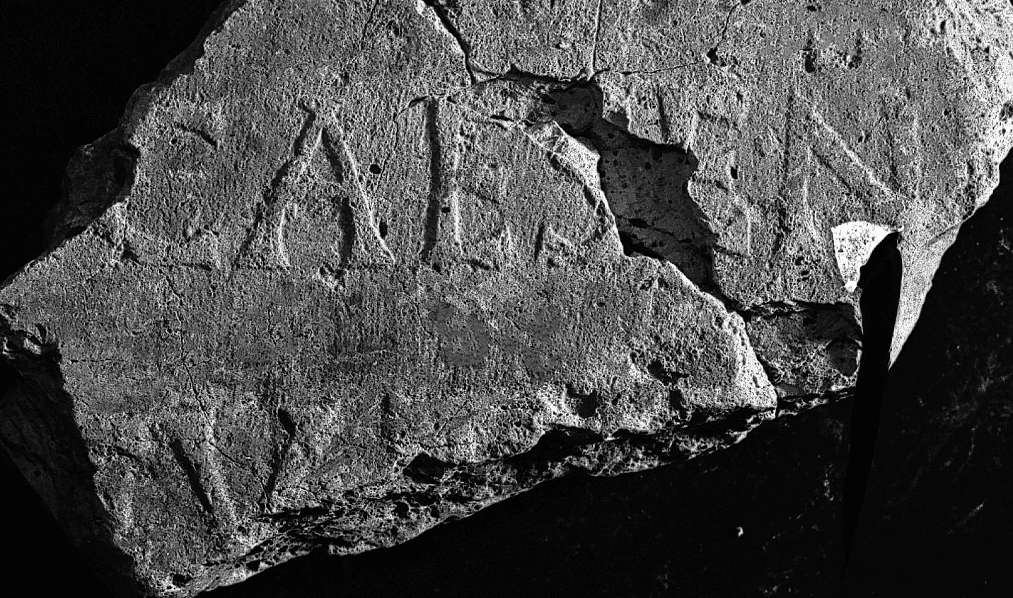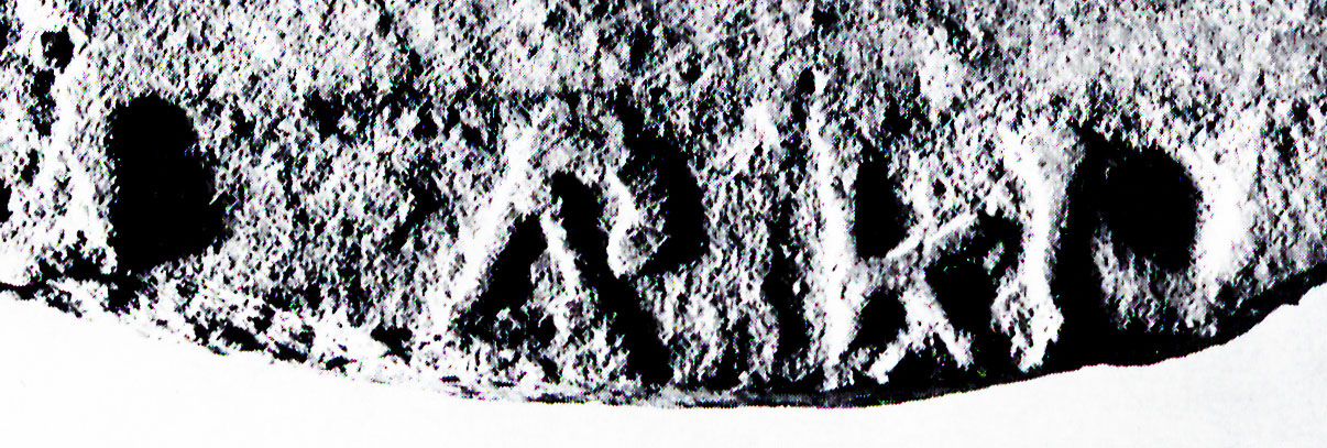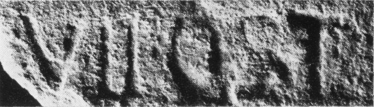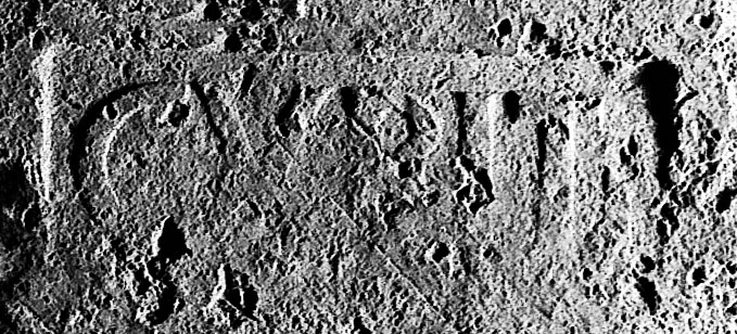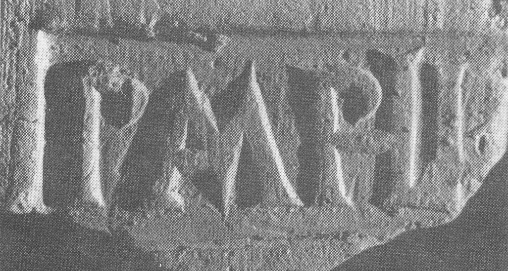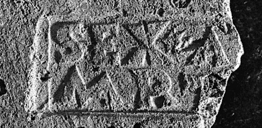 Paleografia. Testo retrogrado; la M è leggermente più piccola delle altre lettere.