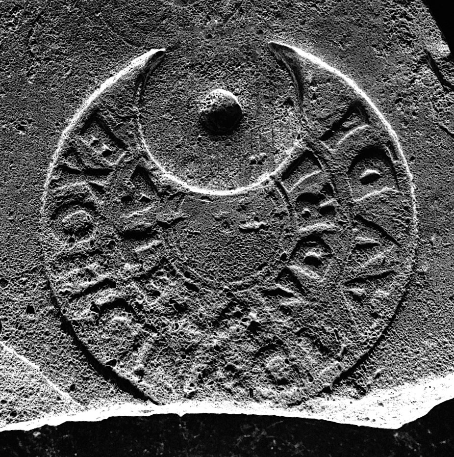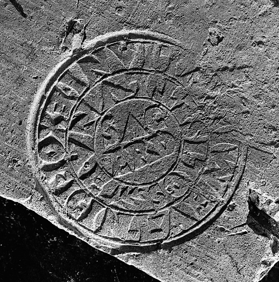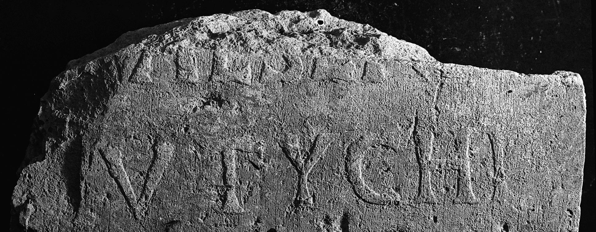Paleografia. Testo retrogrado; la M è leggermente più piccola delle altre lettere.