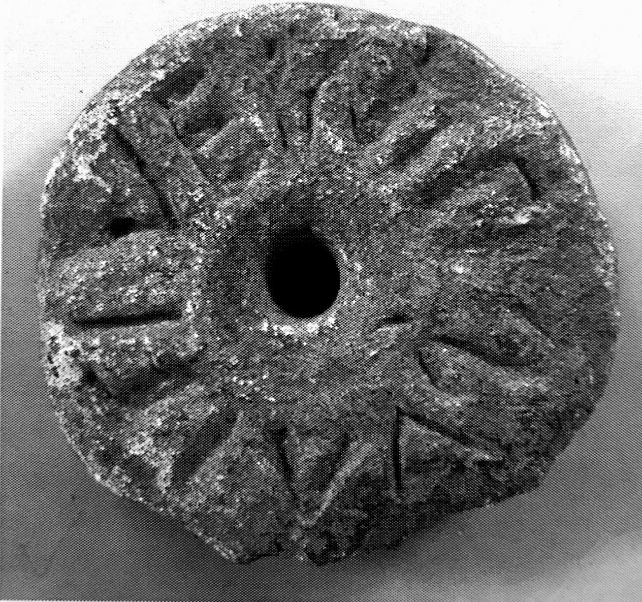 Nell'Antiquario di Nettuno è conservato uno stampo di terracotta con forma e testo uguali ai bolli attestati su laterizi, già pubblicato dagli scavatori (de Haas – Tol – Attema 2011, Tol - de Haas 2013, fig. 9); l'edizione di Chioffi (2022, 34s. N. 23 figg. 31-32, dis. da de Haas – Tol – Attema) rivela che corrisponde anche il diametro (cm 7.5). La composizione del testo è pressoché uguale, ma a causa delle lettere più basse e della rozza grafia si può escludere l'ipotesi che l'insolito punzone (con lettere incavate) sia stato ricavato dall'impronta del bollo laterizio.