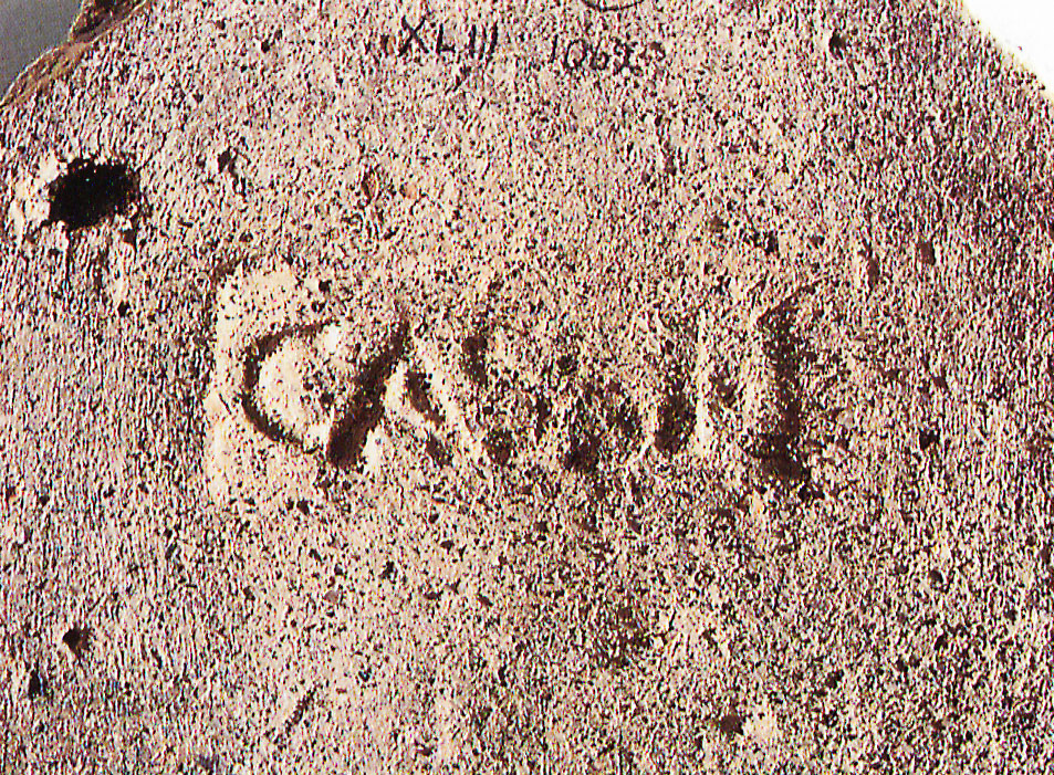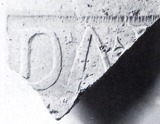 Commenti. Zevi 1972 corregge la lettura dell'ultima lettera della prima riga, che Bloch aveva dato come una P, e completa la descrizione del signum. Due esemplari sono stati pubblicati in maniera non corretta da Vaglieri. Cfr. il fr. CIL VIII 22632.49, [---]ORNELI[---].