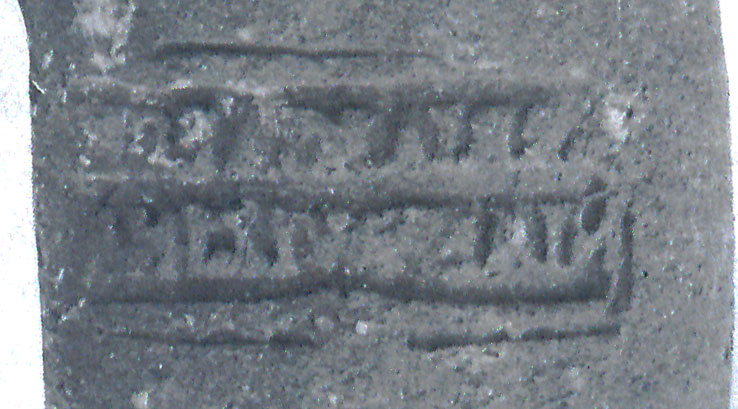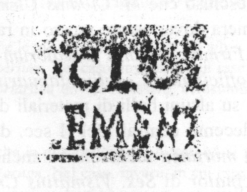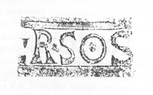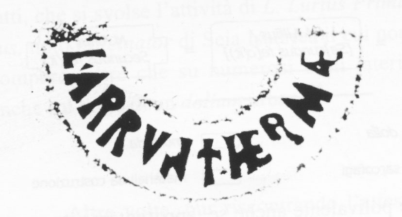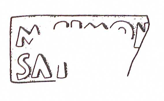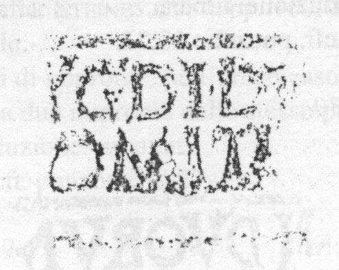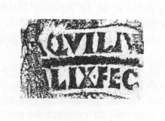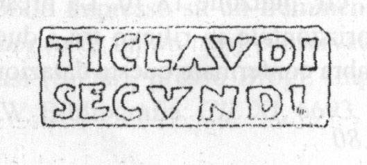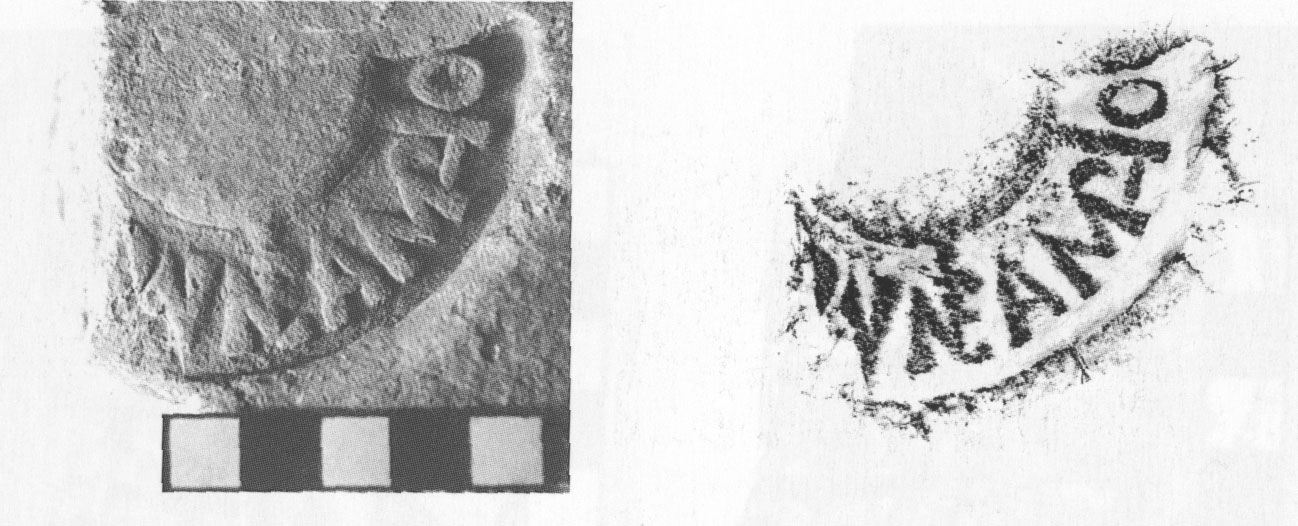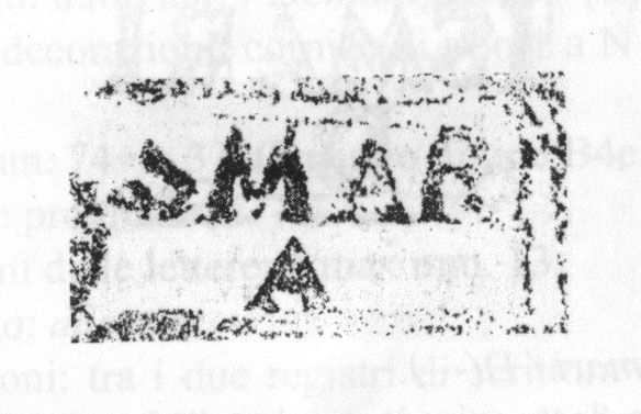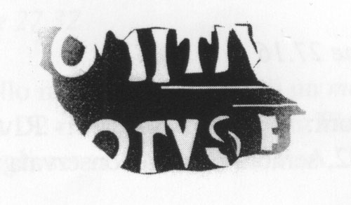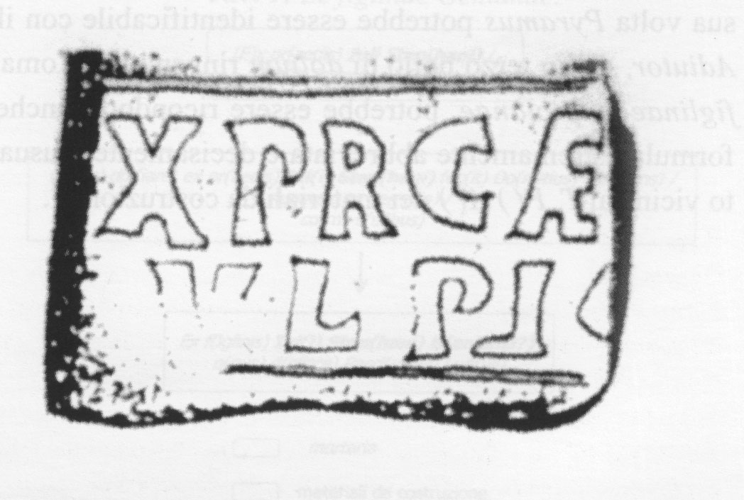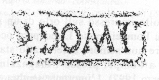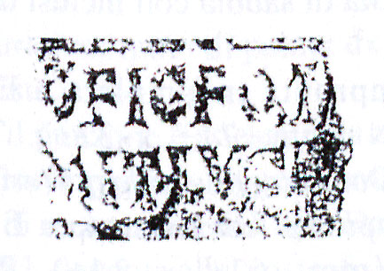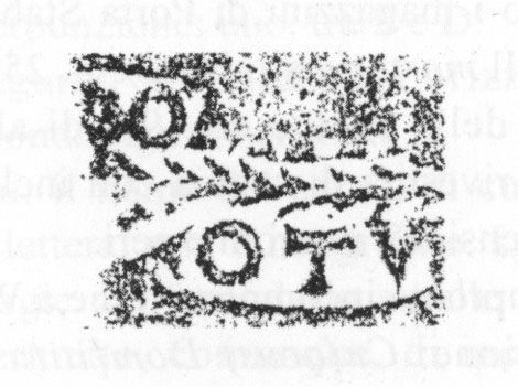 Paleografia. Il bollo ha solo il lato destro arrotondato, forse a causa della rotondità della parete sulla quale è impresso.