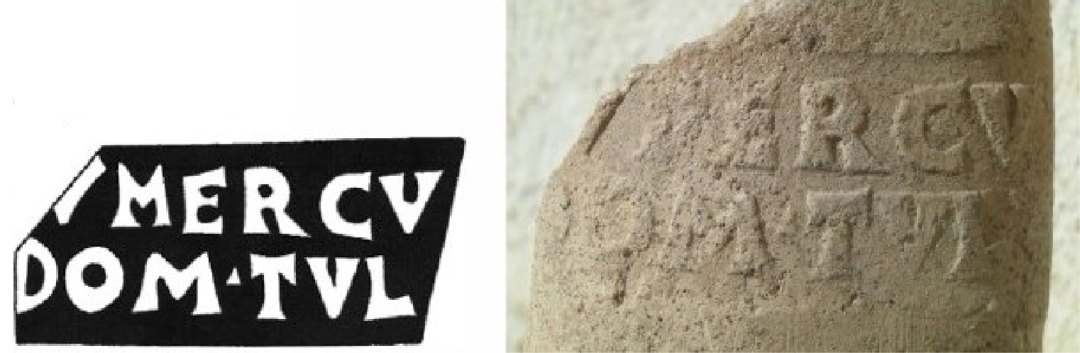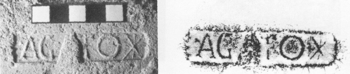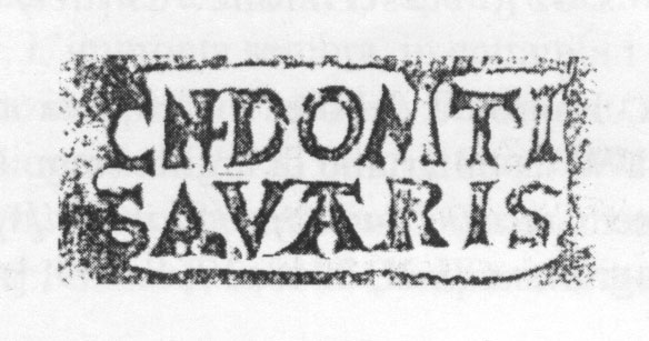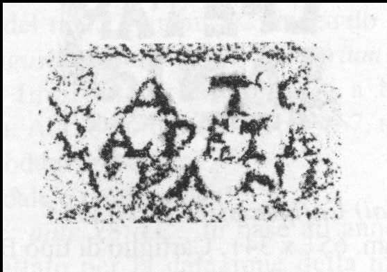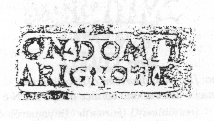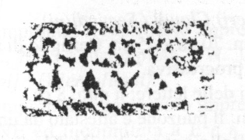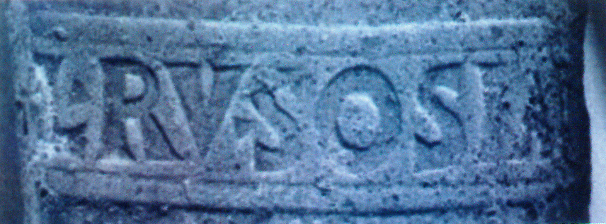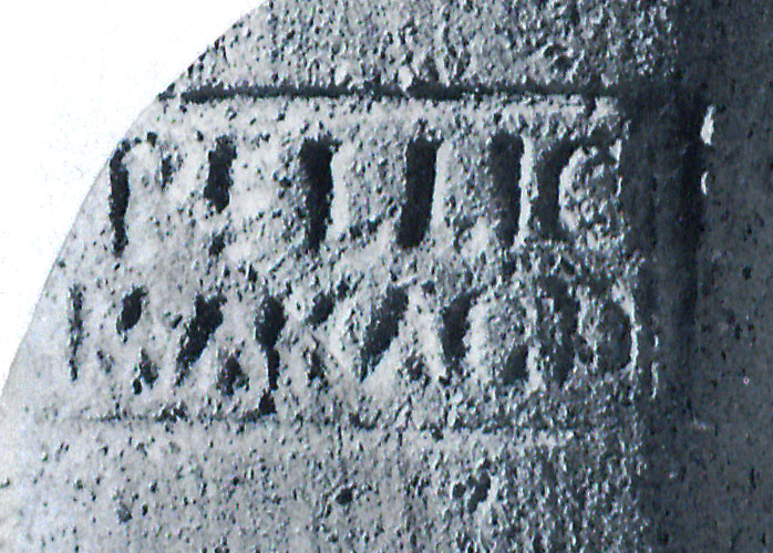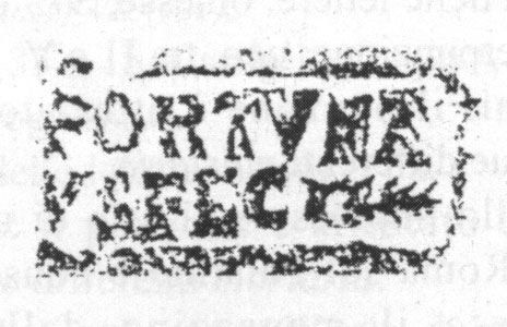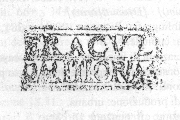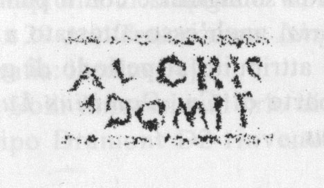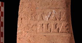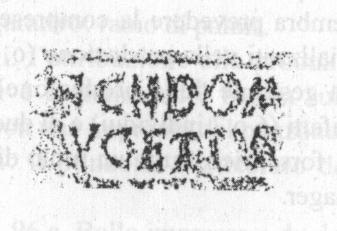 Paleografia. Il bollo ha solo il lato destro arrotondato, forse a causa della rotondità della parete sulla quale è impresso.