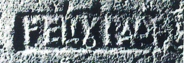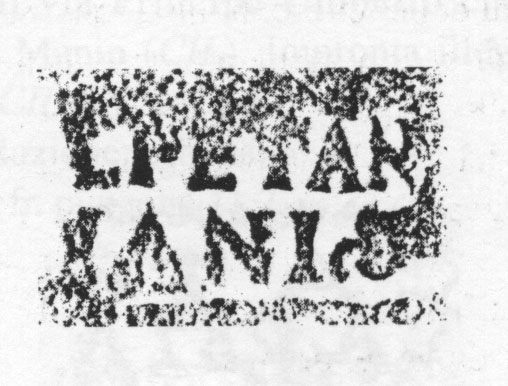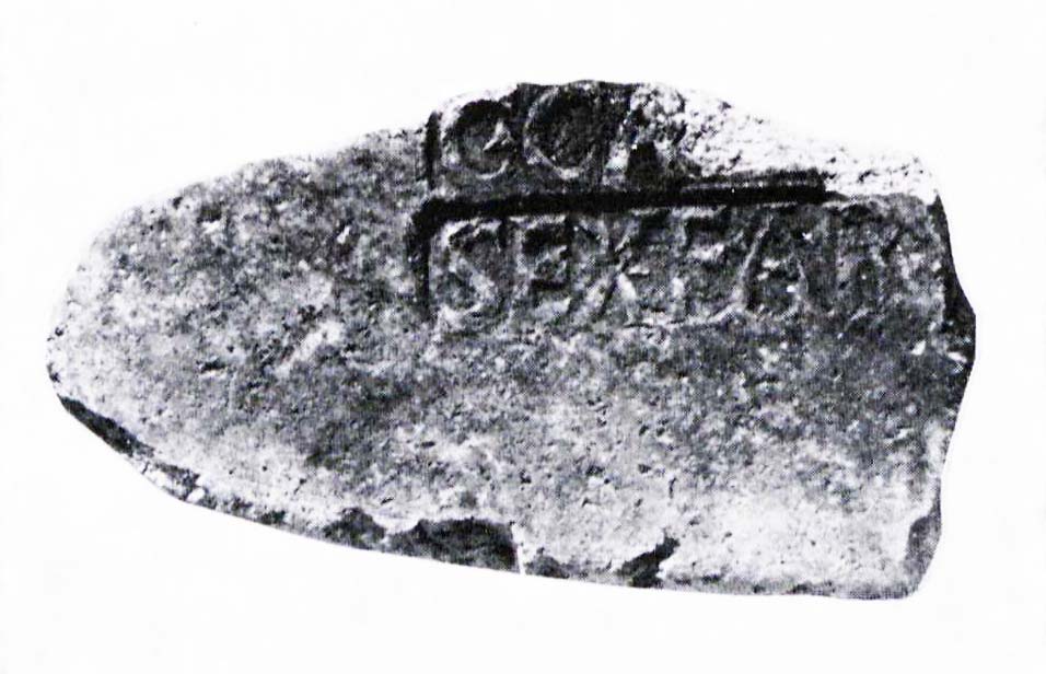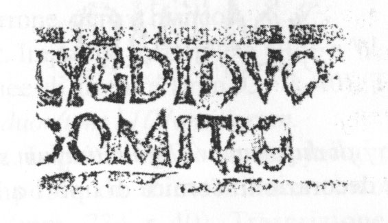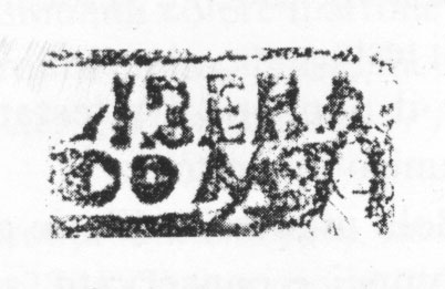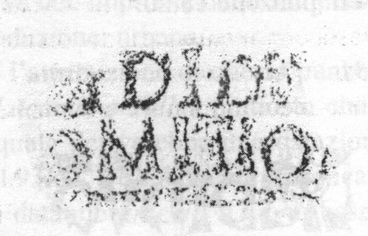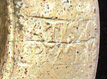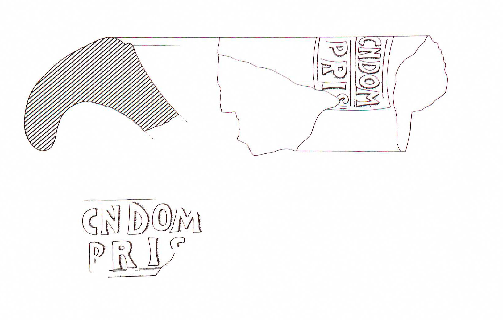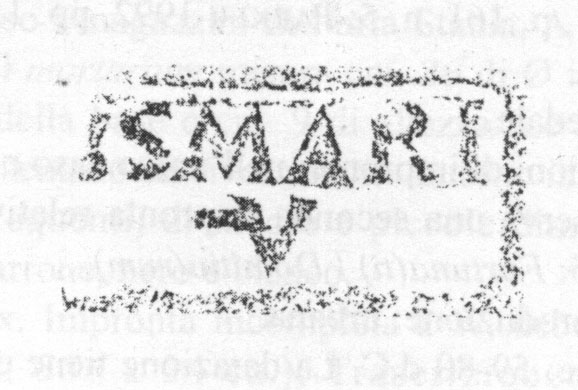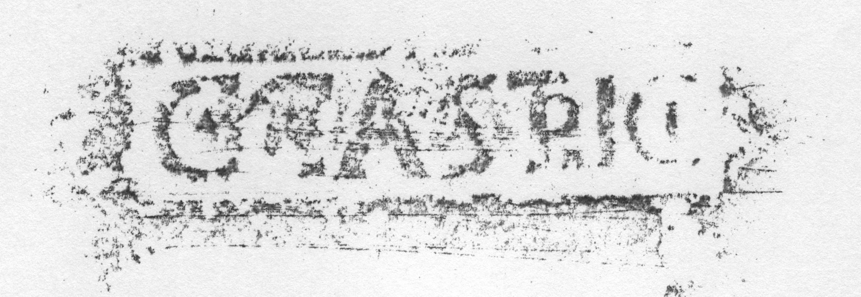 Paleografia. Il bollo ha solo il lato destro arrotondato, forse a causa della rotondità della parete sulla quale è impresso.