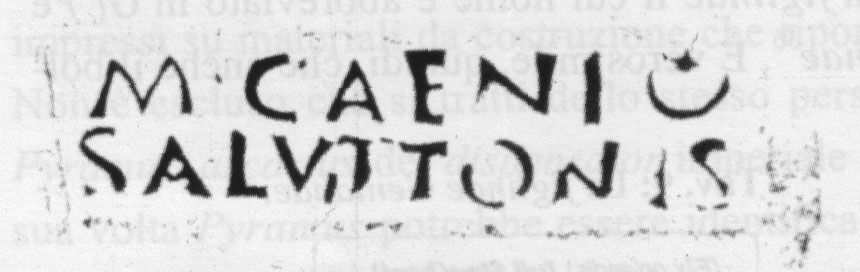 Edizioni. CIL X 8047.15 (d., Pompei). CIL XV 1358b = S. 307. R. Lanciani, NSc 1883, 169 (m./ d., Roma). Pallecchi 2002, 179 punzone 20.2 N. 224.