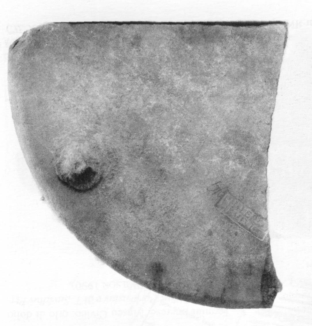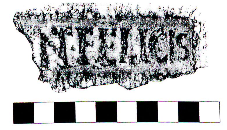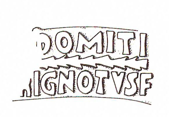 Commenti. Nella fotografia sembra conservato l'occhiello della P; Riley, infatti, legge Pudent[is]; nella seconda riga [---]VAC TO[---], mentre Pallecchi legge ]'Q 'A 'C TE[. La r. 2 è troppo male impressa e conservata per una lettura sicura, ma è preferibile l'attribuzione alle figlinae Tempesinae (Pallecchi) piuttosto che alle Tonneianae (Riley, che presenta anche l'ipotesi che in r. 1 si possa leggere il nome Prudens).