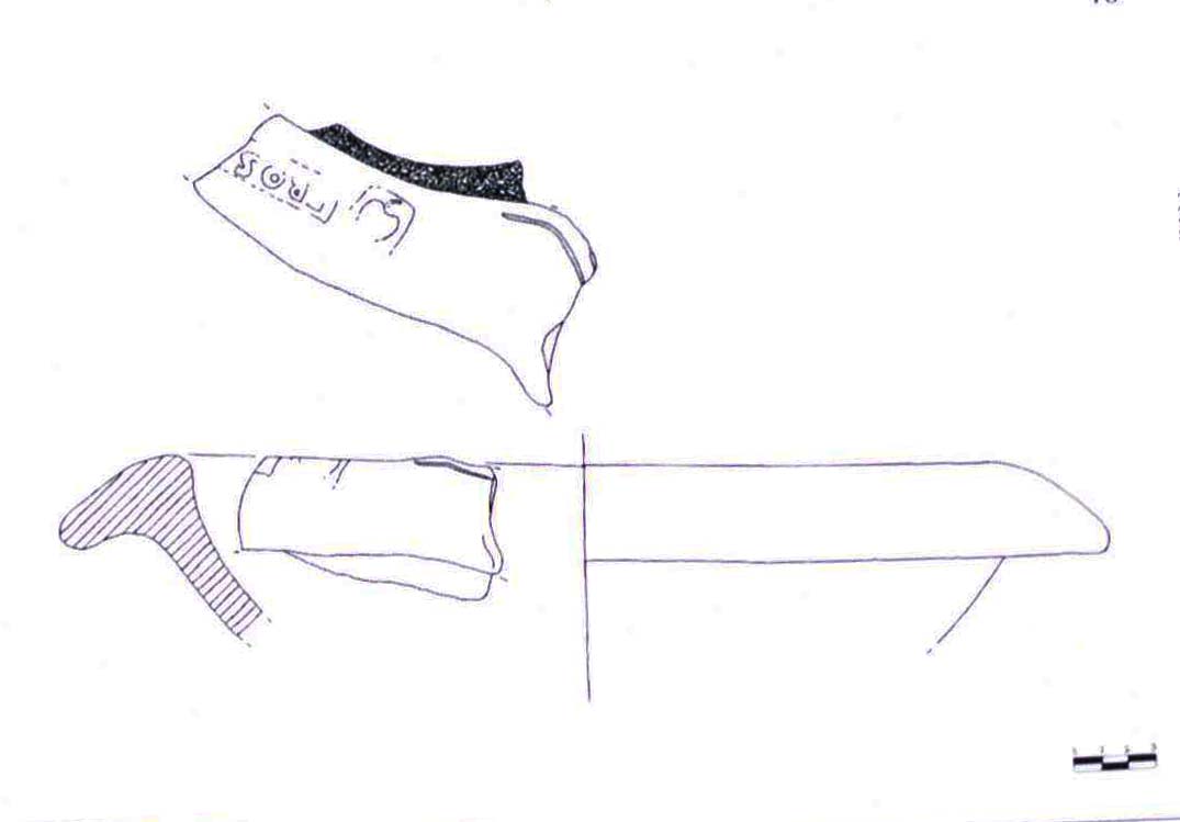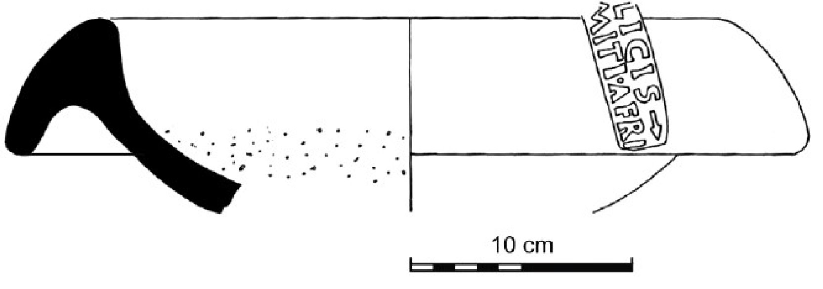 Commenti. Bollo noto solo da due doli dall'Esquilino. Sulla forma, rara su ceramica pesante Taglietti 2015, 269 con n. 10.