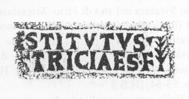 Edizioni. CIL XIV 4093.12, p. 498 (sulla base di una scheda di C.L. Visconti tolto dai laterizi CIL XIV 4089.32).