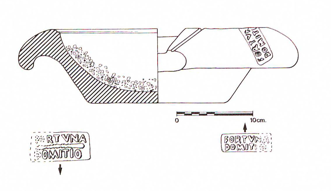 Commenti. La lettura segue Pallecchi, che comunque alla fine della r. 2 segue Riley leggendo S invece della T che si vede bene nella fotografia. C'è forse anche una terza riga, che in fotografia sarebbe tagliata. L'interpretazione di Pallecchi prende spunto dal bollo CIL XV 626 degli anni 212-217, dove gli officinatori sono due LL. Aelii, dei quali uno è Aprilis. Fidelis ha iniziato l'attività sotto C. Fulvius Plautianus (S. 190), continuato negli anni 205-211 (628) e sotto Caracalla (625).
