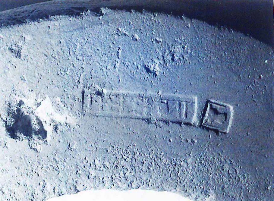 Commenti. Associato a un bollo con ramo di edera, Pallecchi 2002, 184 punzone 22.6 N. 236b, sig. 8.8+, 2.4. Sembra uguale al punzone 22.7 (sig. 6.1+, 2.4), che compare due volte sul mortaio Pallecchi N. 238a/b, che non presenta un bollo con testo.