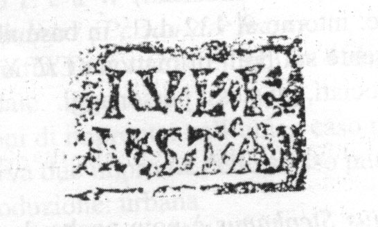 Edizioni. M. Steinby, in S. Donadoni et al., Antinoe (1965-1968). Missione archeologica in Egitto dell'Università di Roma. Istituto di Studi del Vicino Oriente. Roma 1974, 136 N. 1, fig. 64.2 (m., Antinoe). Steinby 1978-79, 77s. N. 169. Pallecchi 2002, 190s. punzone 25.2 Nn. 245a/b.