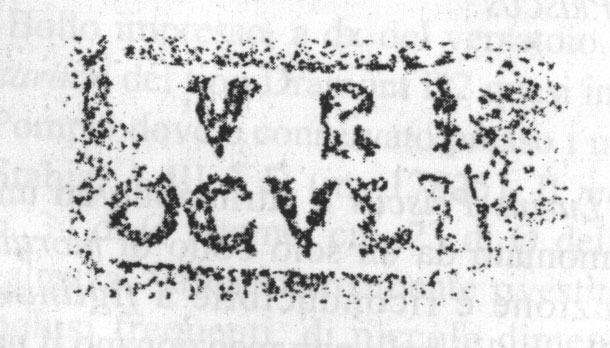 Commenti. Pallecchi, diffidando della trascrizione, propone la lettura sopra riportata e suppone che la seconda riga contenga il nome di L. Iulius Rufus, dominus delle Viccianae nel bollo S. 200, che contiene anche il nome di L. Lurius Myrinus. Nel disegno è stata omessa la r. 2.