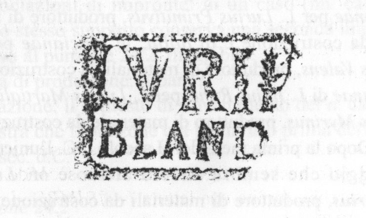 Edizioni. A. Frova, 'Marche di anfore e altri bolli romani del milanese', ©Epigraphica 14 (1952), 49-93, part. 82 N. 4, tav. VIII.4 (m., Milano). Hartley 1973, 52 N. 12, fig. a p. 56 (m., Verulamium). Steinby 1978-79, 77 N. 166. Hartley 1984, 285 N. 77 fig. 118.77 a p. 282. Della Porta - Sfredda - Tassinari 1998, 181. Pallecchi 2002, 187s. punzone 24.1 Nn. 242, 243a.