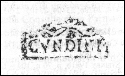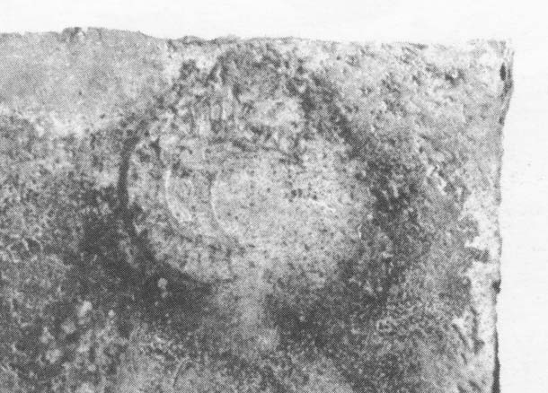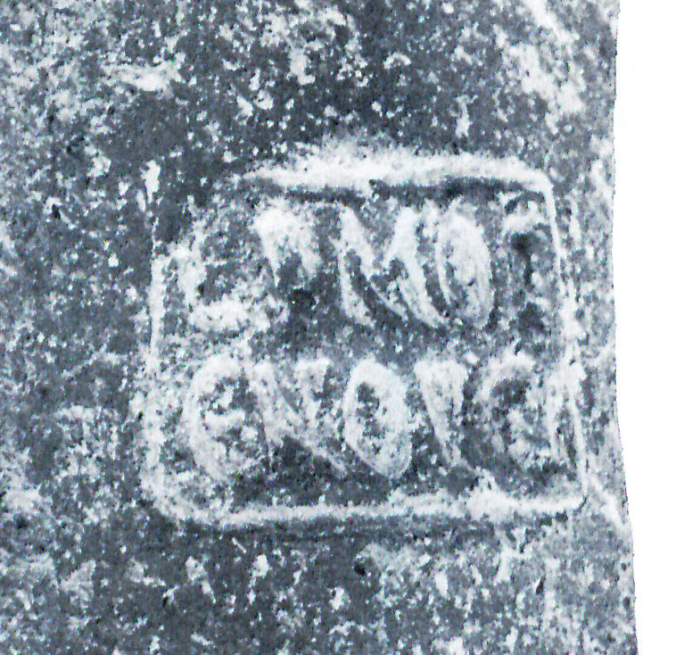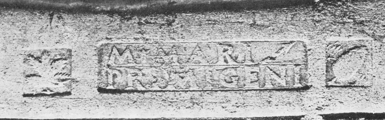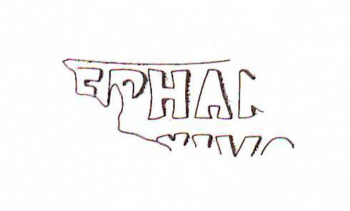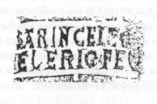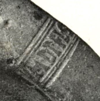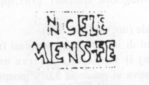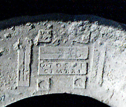 Commenti. Associato a un bollo con ramo di edera, Pallecchi 2002, 184 punzone 22.6 N. 236b, sig. 8.8+, 2.4. Sembra uguale al punzone 22.7 (sig. 6.1+, 2.4), che compare due volte sul mortaio Pallecchi N. 238a/b, che non presenta un bollo con testo.